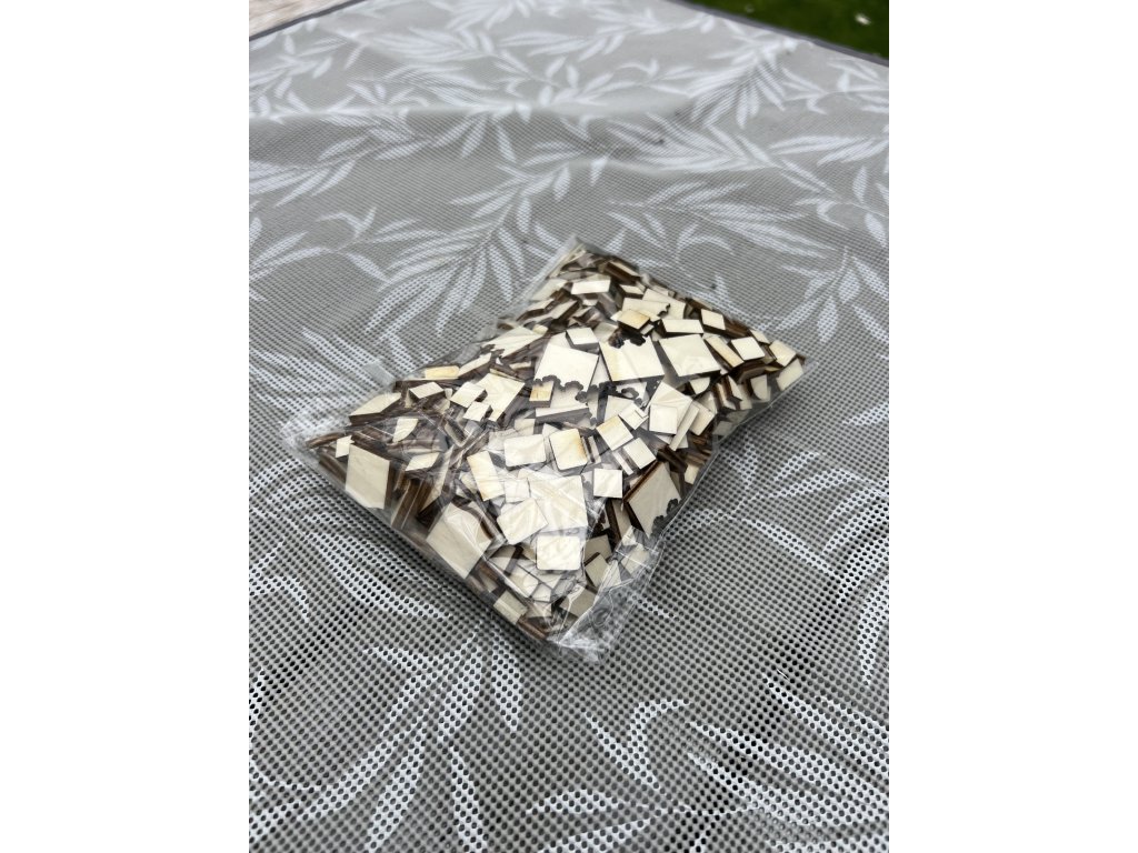 Balení odřezků z topolové překližky vzniklých při výrobě dřevěných doplňků. V praktickém sáčku o rozměru 15 × 10 cm najdete náhodně namíchané dílky – pravidelné i nepravidelné tvary, různé velikosti a tloušťky (většinou 3 mm).