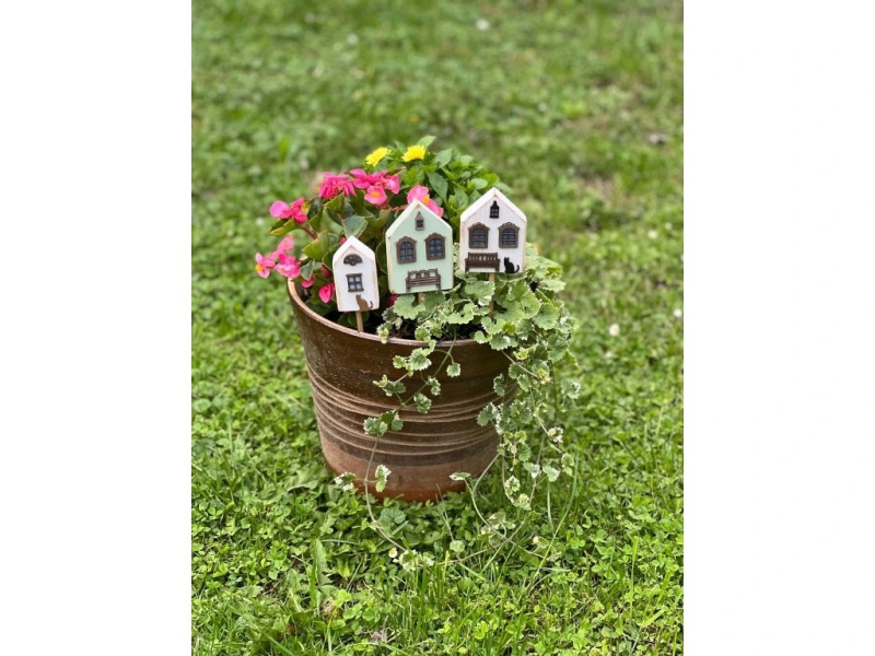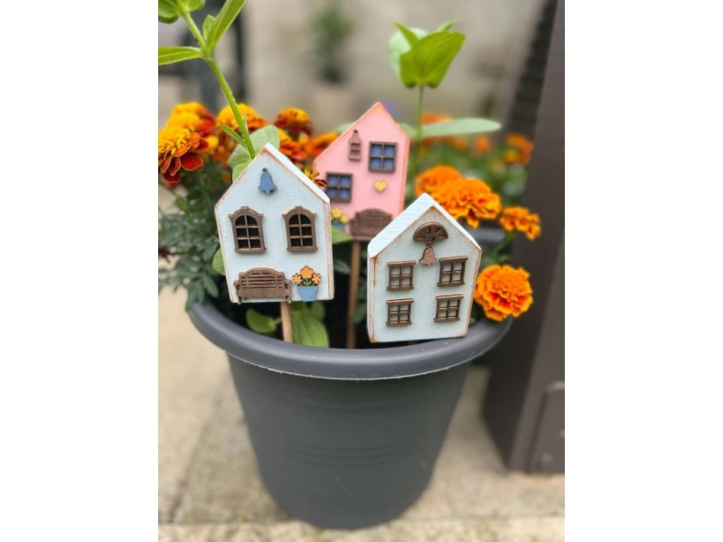 Naše domečky jsou vyrobené z masivního dřeva a mají zapichovací tyčku, díky které je jednoduše umístíte do truhlíku, květináče nebo záhonu. Dodáváme je jako nenalakované a nenabarvené polotovary, připravené k vlastnímu dotvoření.