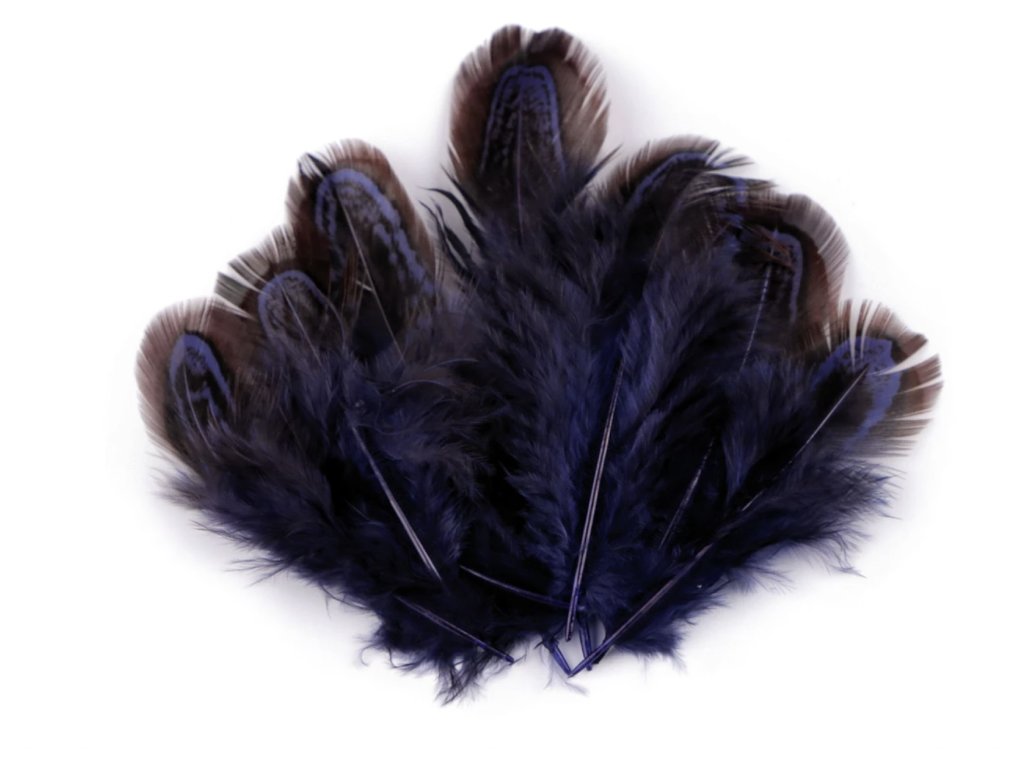 Dekorační pírka – Tmavě modrá, 5–7 cm, 20 ks