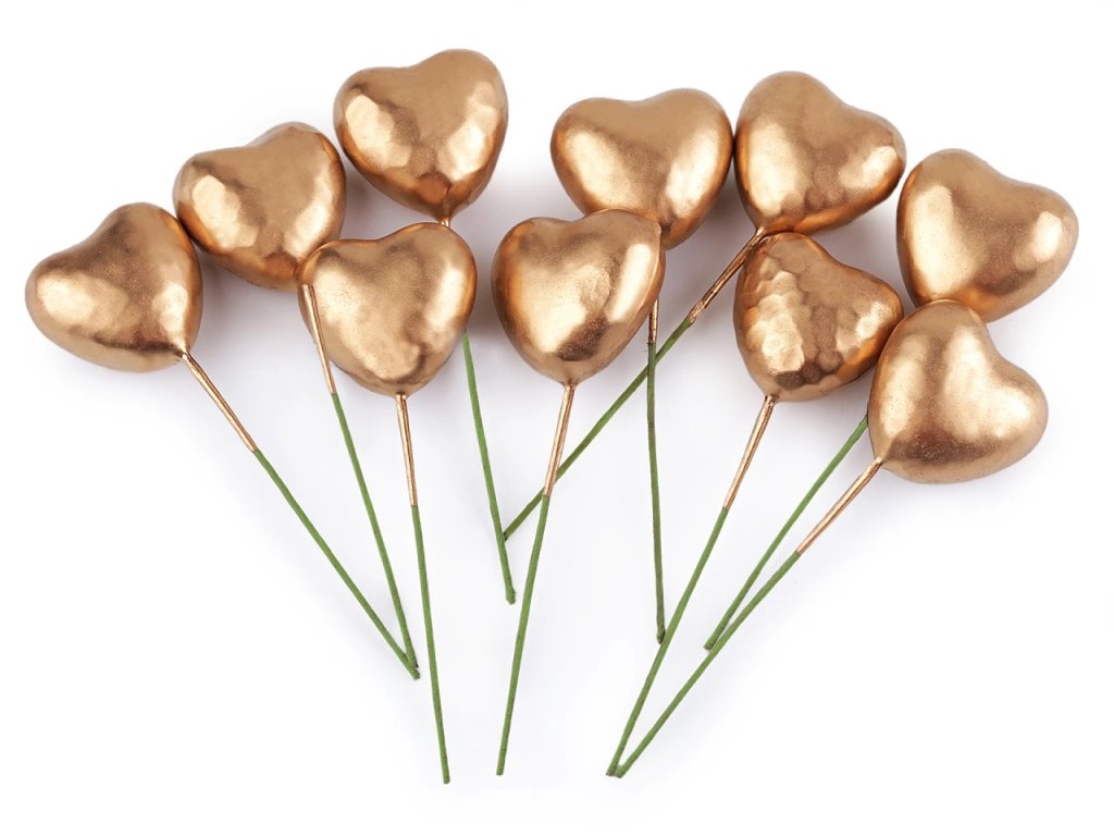 Dekorační srdce na drátku – Zlatá