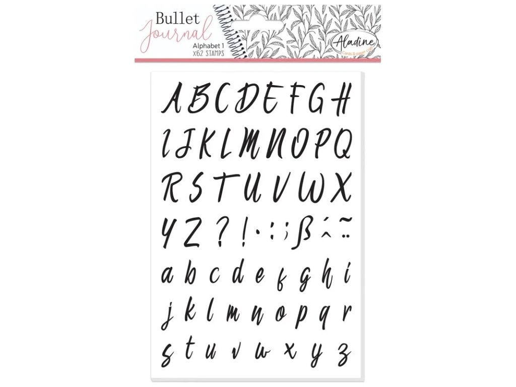 Diářová razítka Aladine Stampo Bullet Journal – abeceda kurzíva jsou určena pro plánování, psaní a kreativní práci s diářem, bullet journalem nebo plánovačem. Sada obsahuje 62 razítek s písmeny abecedy ve stylu kurzívy, která usnadní vytváření nadpisů, textů, popisů a dalších zápisů ve vašem diáři či poznámkovém bloku.