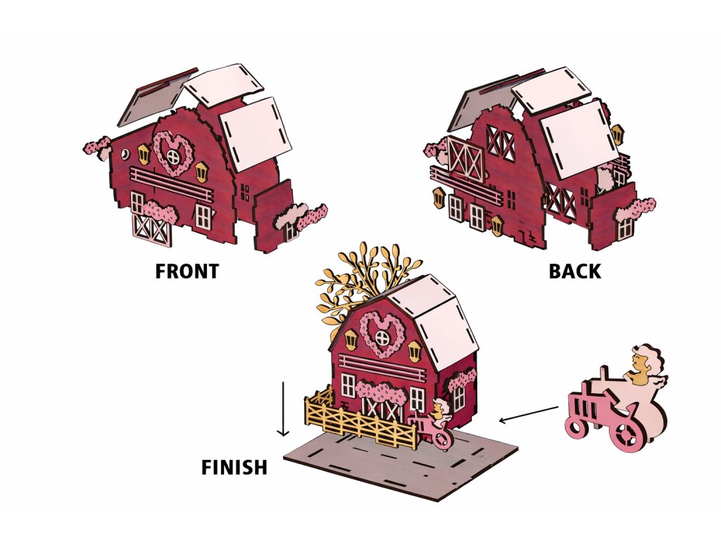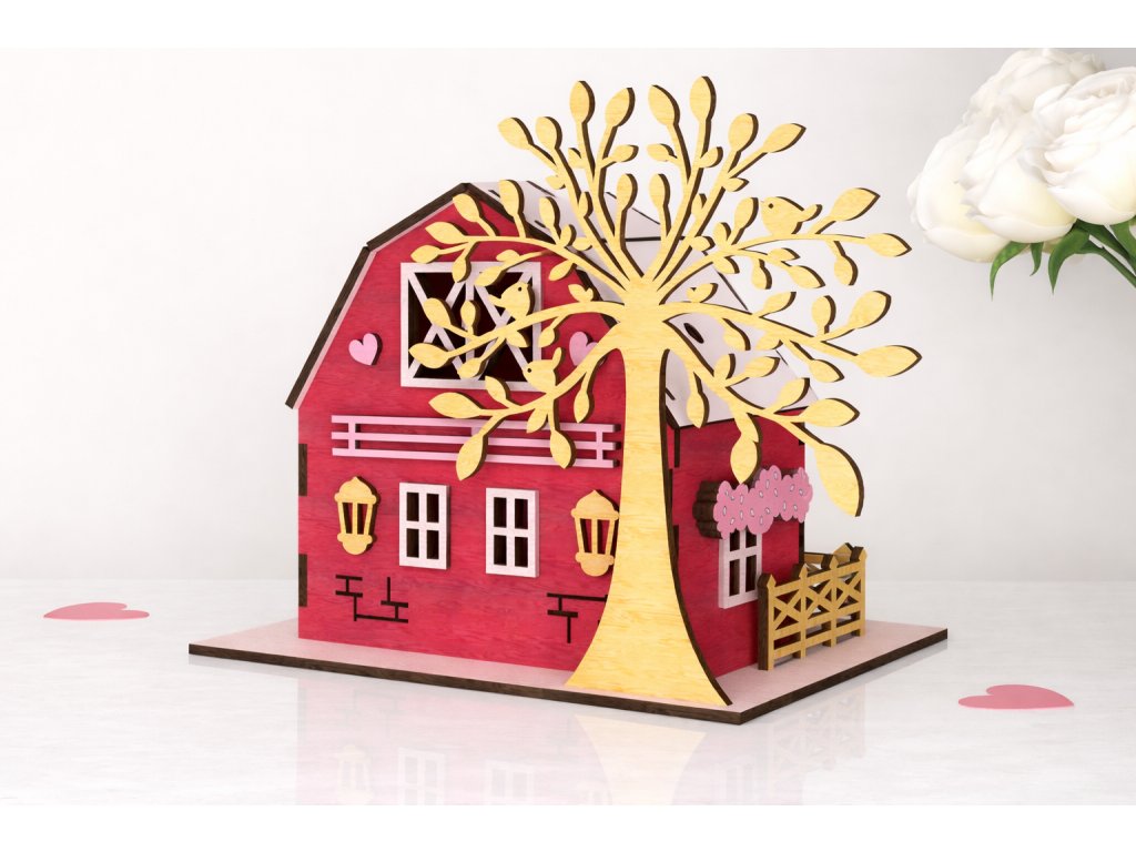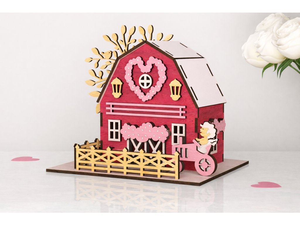 Domeček z překližky – Valentýnská stodola (skládačka)