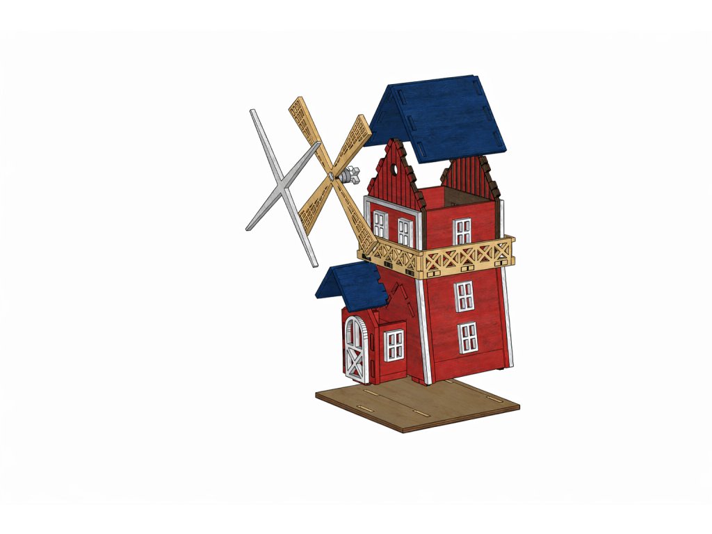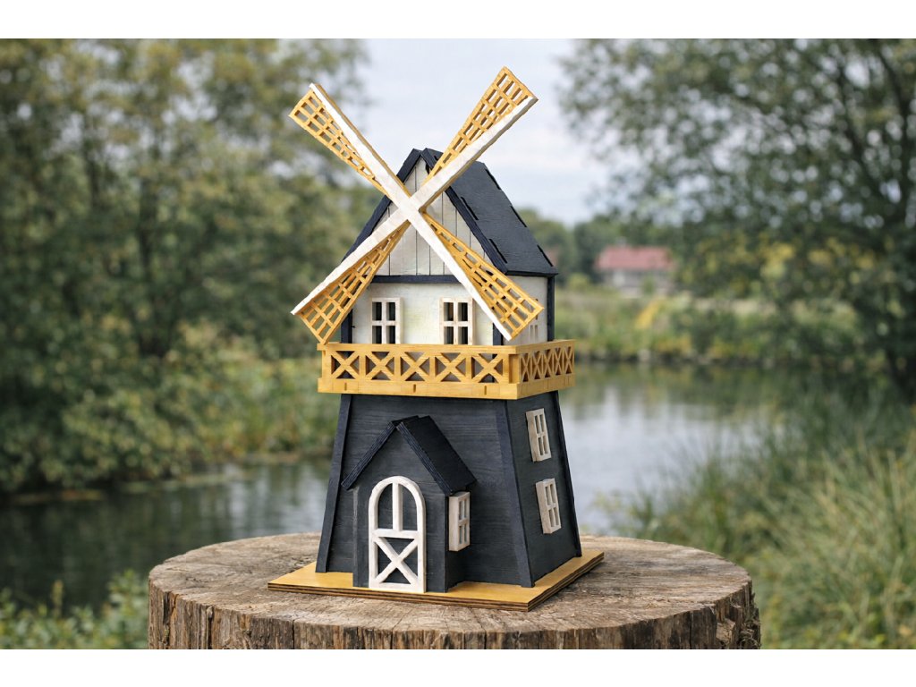 Sestavte si vlastní dekorativní větrný mlýn z kvalitní topolové překližky o tloušťce 3 mm. Stavebnice obsahuje přesně vyřezané díly, které do sebe jednoduše zapadají a umožňují snadné sestavení.