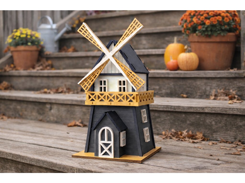 Mlýn je určen k dalšímu dotvoření – můžete jej ponechat v přírodní podobě nebo jej upravit barvami, mořidly či jinými kreativními technikami. Díky svému tvaru a detailnímu zpracování je vhodný jako dekorace do interiéru nebo součást tematických aranžmá.
