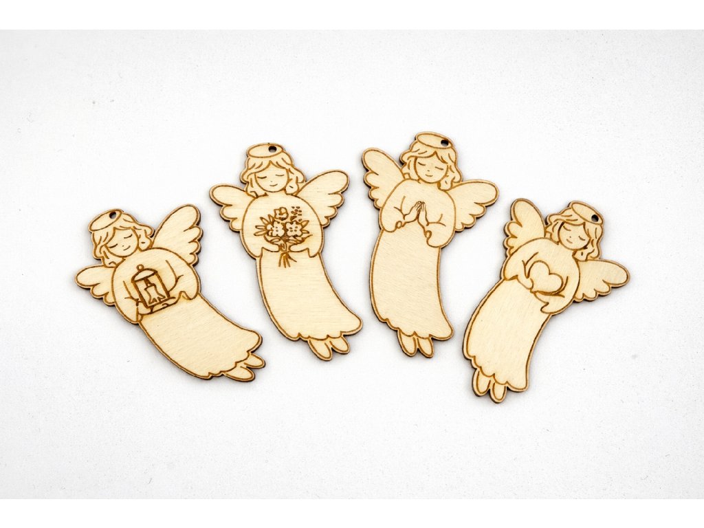 Přírodní povrch bez povrchové úpravy umožňuje snadné malování, patinování, lepení i další kreativní techniky. Díky čistému laserovému řezu a detailnímu motivu je andělka vhodná jako samostatná dekorace i jako součást větších kreativních projektů.