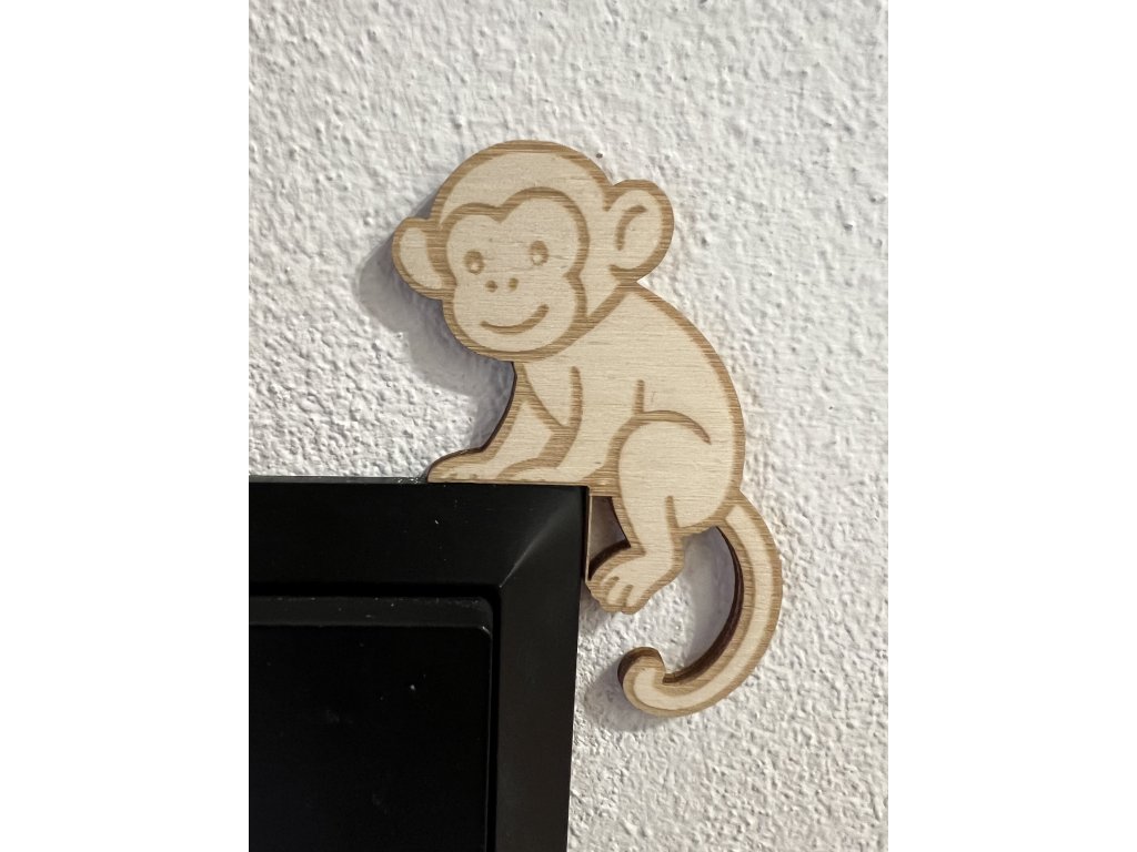 Originální dekorace vyřezaná z 3mm topolové překližky. Je určená k umístění na vyčnívající rám dveří, kde působí jako hravý a nečekaný doplněk interiéru.