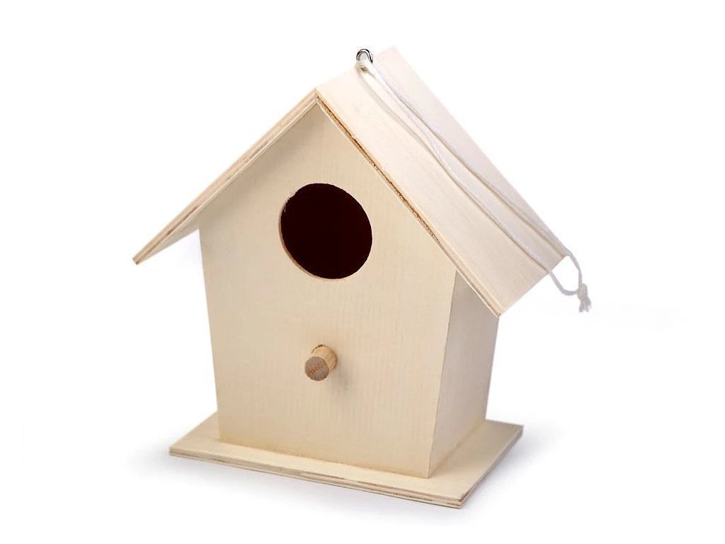 Dřevěná ptačí budka je milou dekorací, která ozdobí terasu, balkón, kuchyň nebo dětský pokoj. Díky poutku ji snadno zavěsíte na libovolné místo. Můžete ji ponechat v přírodní podobě nebo kreativně dozdobit – například pomocí akrylových či temperových barev, popisovačů, glitrů, samolepek nebo technikou scrapbooking a decoupage.