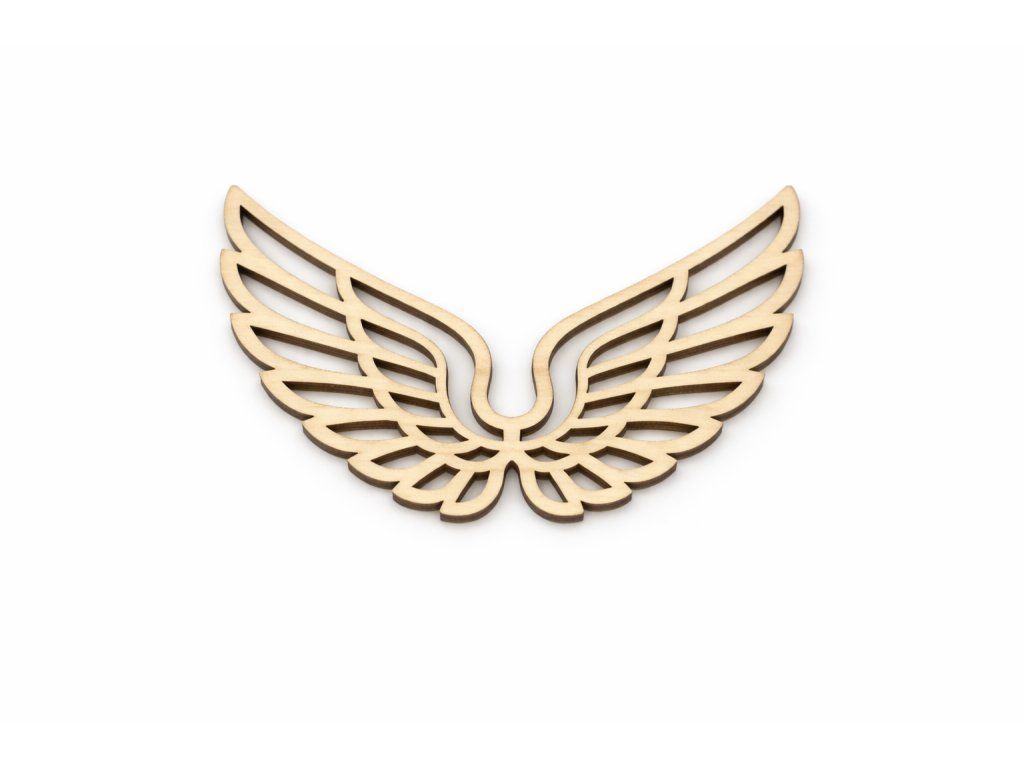Dřevěná dekorace ve tvaru křídel vyřezaná z kvalitní topolové překližky o síle 3 mm. Jemný motiv s otevřenými liniemi působí lehce a hodí se pro další tvoření i samostatné použití.