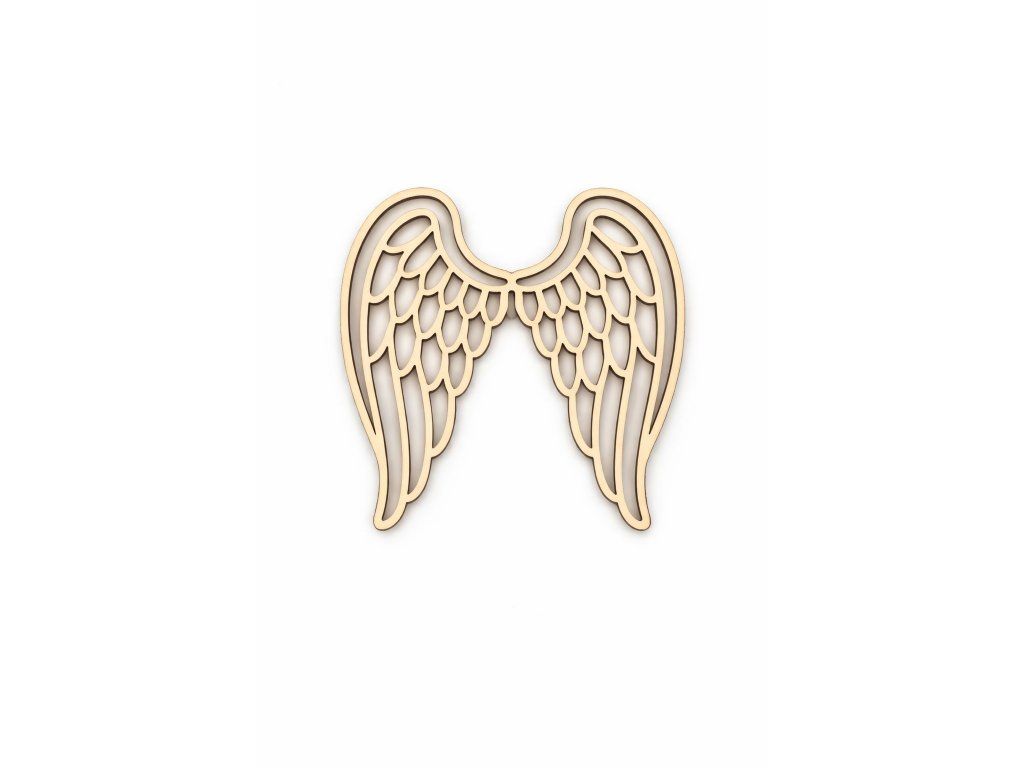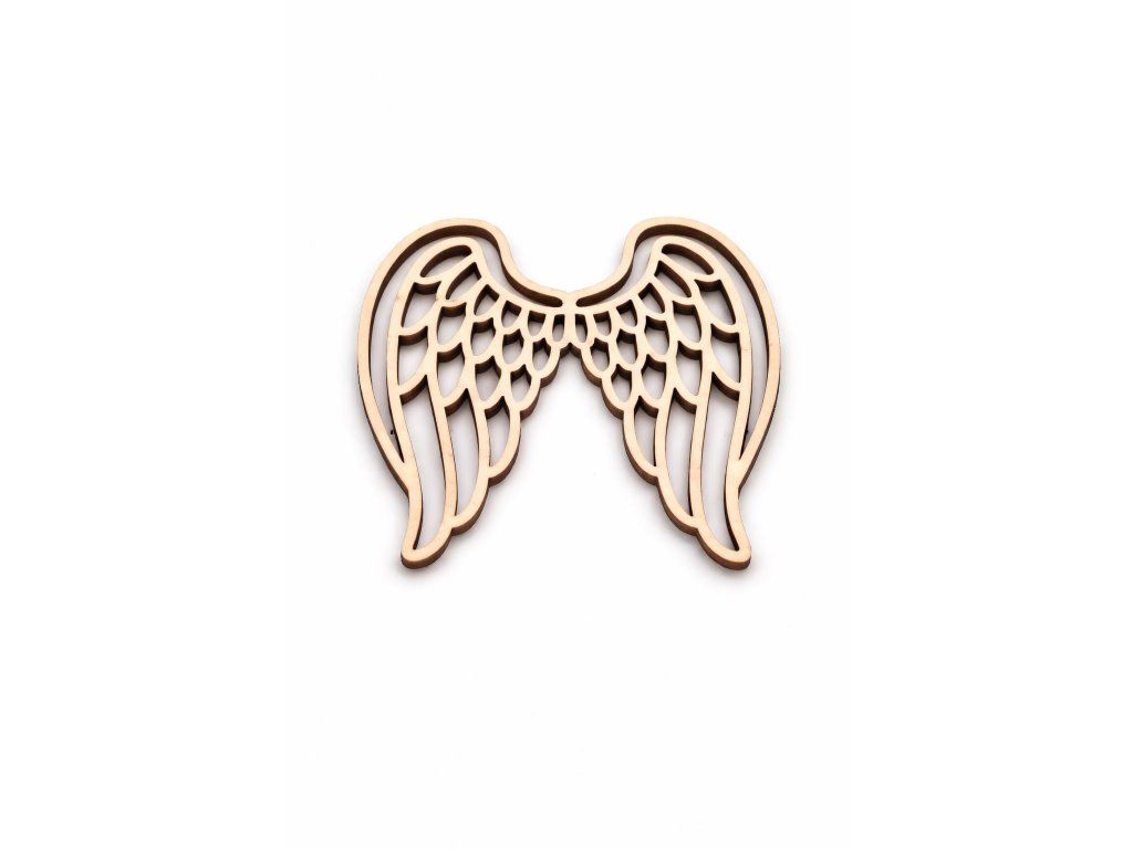 Dřevěná dekorace ve tvaru křídel vyřezaná z kvalitní topolové překližky o síle 3 mm. Jemný motiv s otevřenými liniemi působí lehce a hodí se pro další tvoření i samostatné použití.
