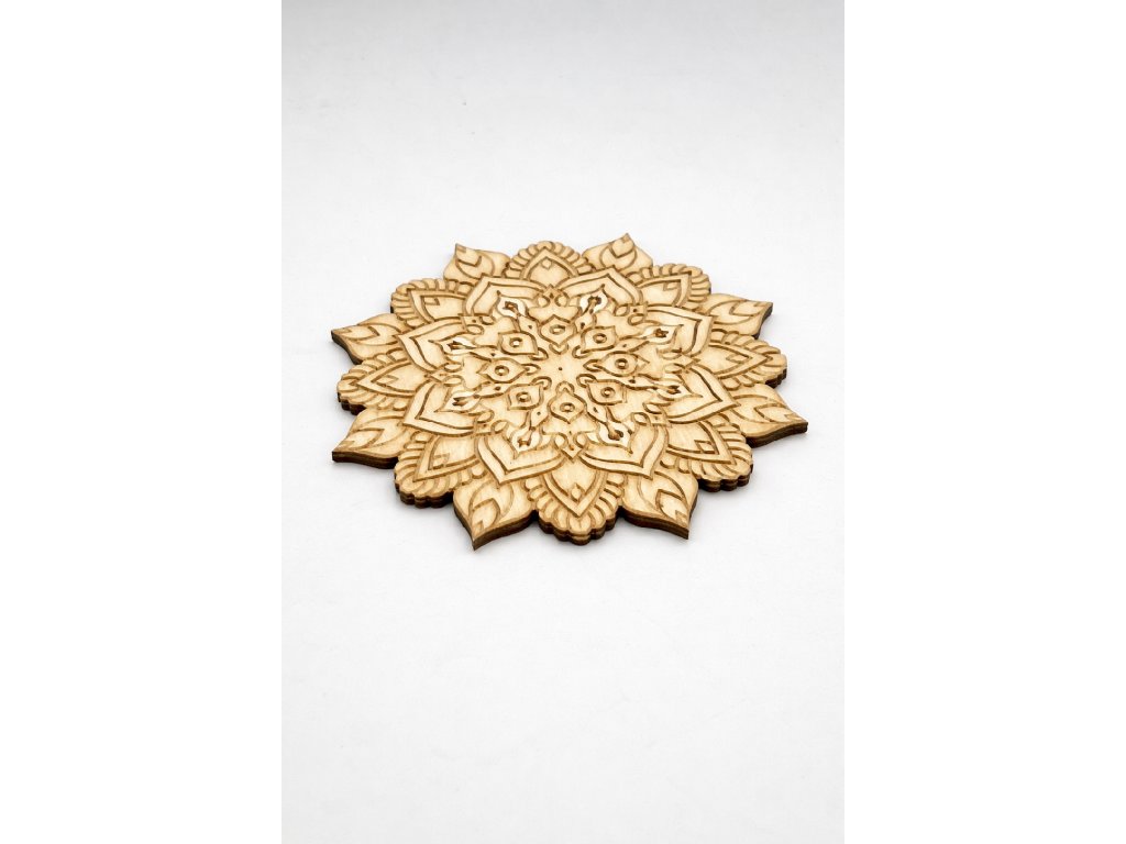 Detailně zpracovaná mandala vyřezaná z kvalitní topolové překližky o síle 3 mm. Dekorace je lehká, pevná a připravená k dalšímu tvoření.