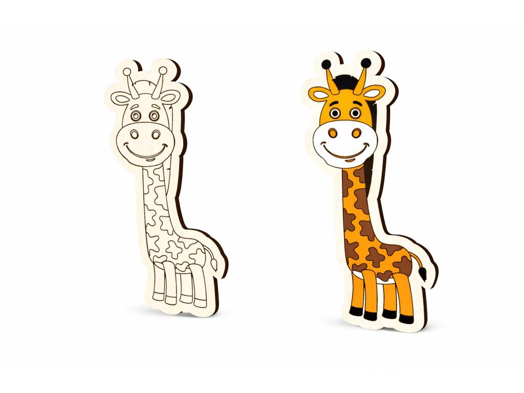Dřevěná žirafa z 3 mm topolové překližky je připravená k dotvoření podle vlastní fantazie. Povrch obsahuje jemné gravírování, které usnadňuje vybarvování a pomáhá zachovat detaily motivu.