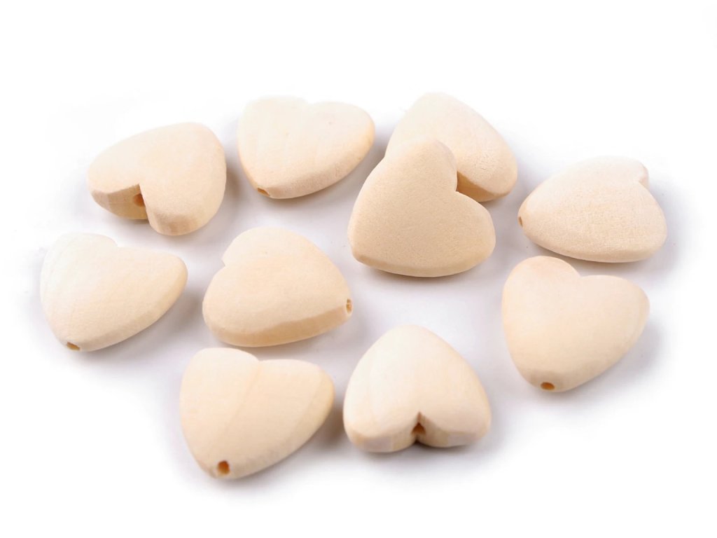Dřevěné korálky ve tvaru srdce jsou vyrobené z nelakovaného přírodního dřeva a mají kvalitní, hladké opracování. Díky nelakovanému povrchu jsou vhodné i k dalším úpravám, například k domalování nebo moření.