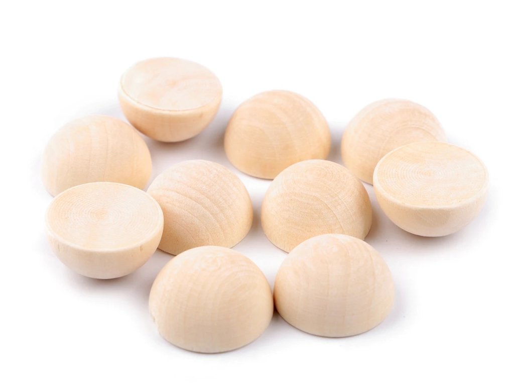 Dřevěné polokoule bez dírek Ø25 mm – balení 10 ks