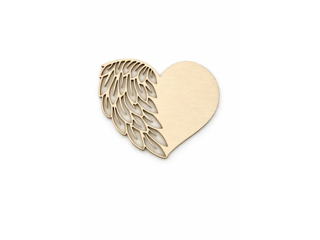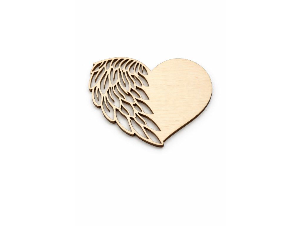 Dřevěná dekorace ve tvaru srdce s křídlem vyřezaná z kvalitní topolové překližky o síle 3 mm. Kombinace hladké plochy a detailního křídla vytváří zajímavý základ pro další tvoření.