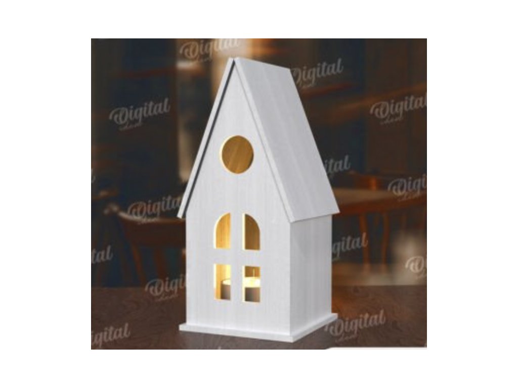 Dřevěný domeček vyřezaný z 3mm topolové překližky, který si jednoduše sami složíte. Uvnitř je prostor pro elektrickou svíčku nebo LED světýlka, takže po sestavení vytvoří příjemný světelný dekor.