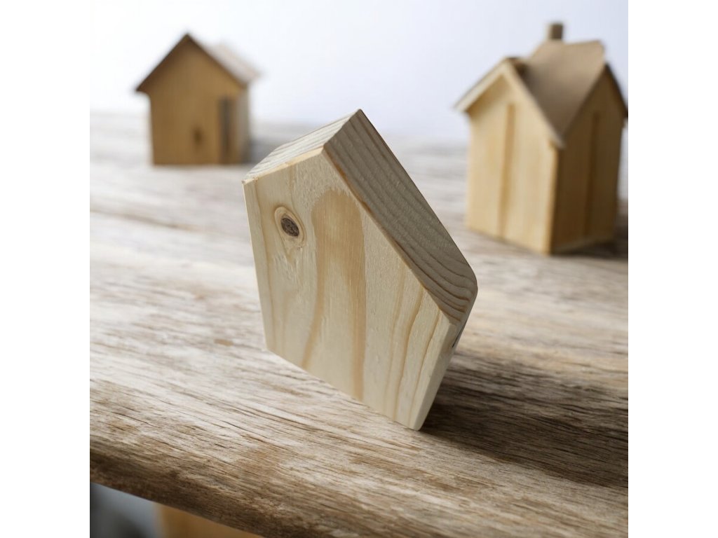 Dřevěný domeček z masivu 7 × 1,9 cm – polotovar pro tvoření