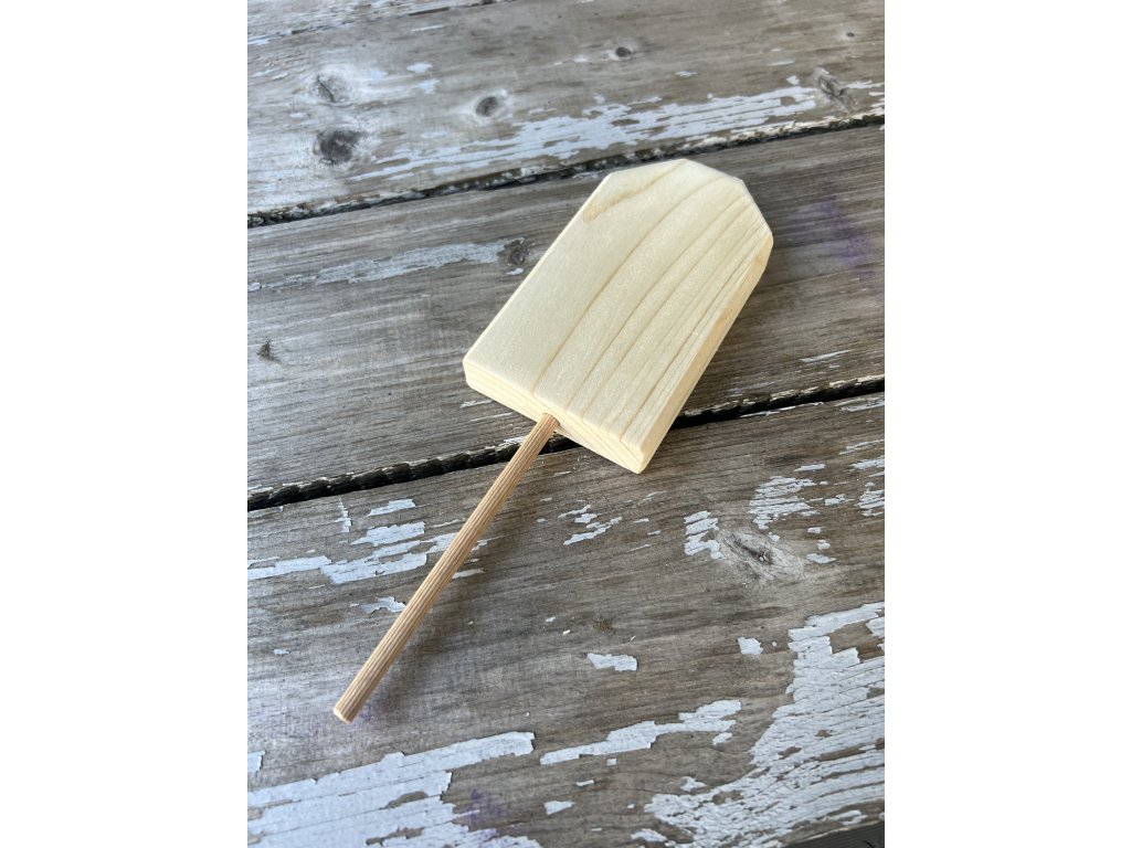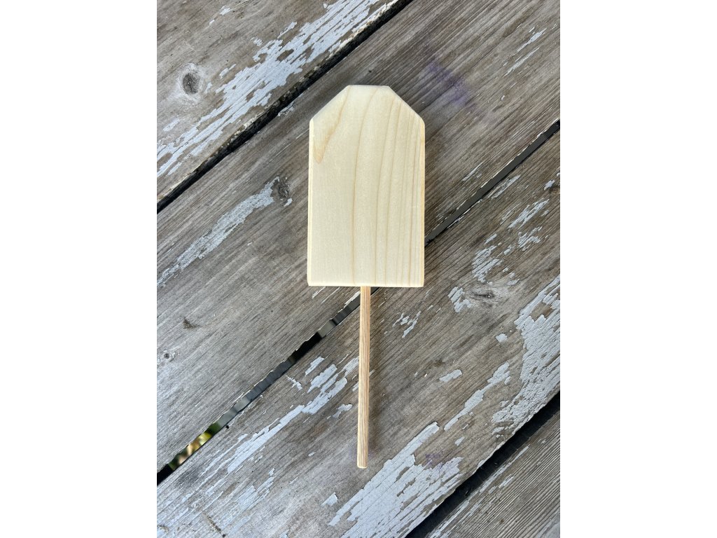 Dřevěný domeček z masivu 7 × 1,9 cm na tyčce – polotovar k výrobě zápichu