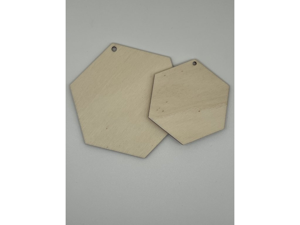 Dřevěný hexagon s očkem je univerzální polotovar, který si snadno přizpůsobíte podle svých nápadů.