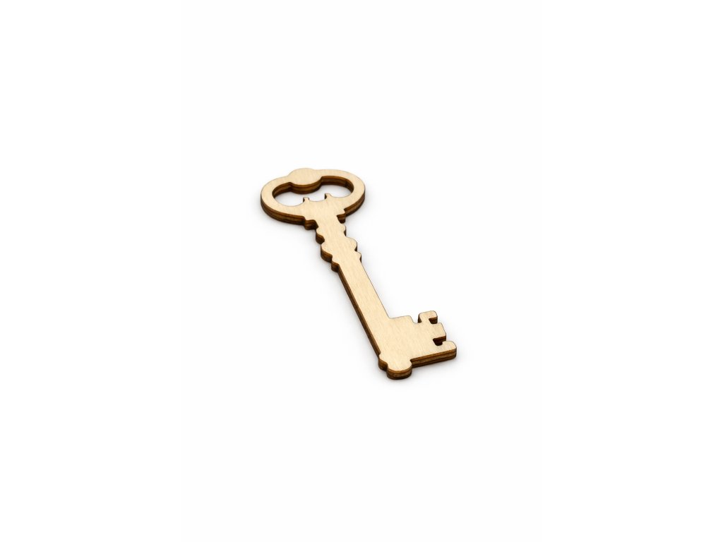Tento dřevěný klíč je vyřezaný z 3mm topolové překližky a slouží jako univerzální prvek pro další kreativní tvoření. Hodí se pro výrobu dekorací, přání, visaček, tematických projektů nebo jako doplněk k domečkům, truhličkám a dárkovým balením.