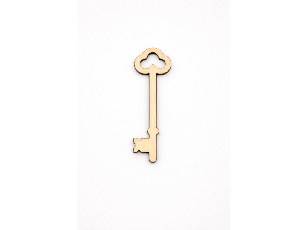 Tento dřevěný klíč je vyřezaný z 3mm topolové překližky a slouží jako univerzální prvek pro další kreativní tvoření. Hodí se pro výrobu dekorací, přání, visaček, tematických projektů nebo jako doplněk k domečkům, truhličkám a dárkovým balením.