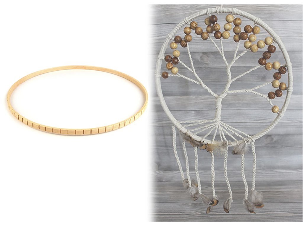 Dřevěný kruh z bukového dřeva využijete na výrobu lapačů snů, zvonkoher a dalších závěsných dekorací. Je vhodný i na drhané obrázky, macramé závěsy či kreativní projekty. Po obvodu je 71 pravidelně rozmístěných drážek, které usnadňují uchycení přízí či provázků. Kruh je nelakovaný, takže si jej můžete ponechat v přírodní podobě nebo dále povrchově upravit podle vlastního vkusu.