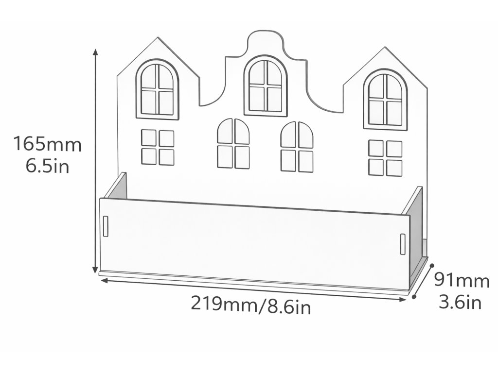 Dřevěný organizér ve tvaru domečku je polotovar určený k vlastnímu sestavení a dalšímu kreativnímu zpracování. Slouží jako praktický úložný prvek, který lze využít například na drobnosti, dekorace nebo kreativní materiál.