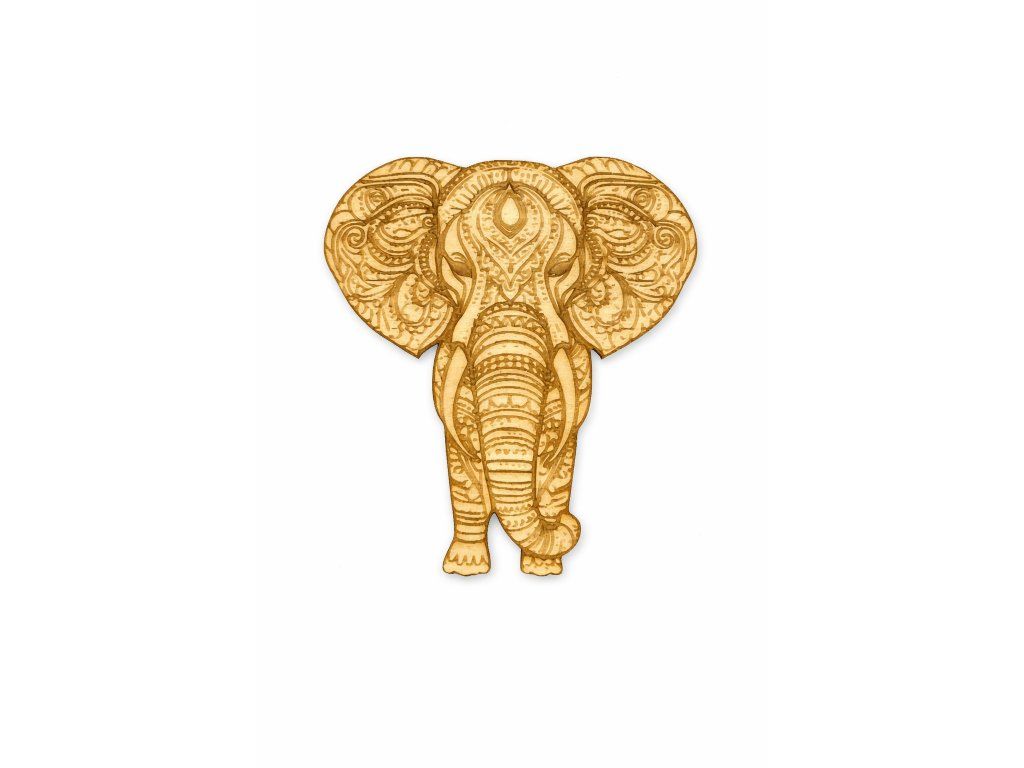 Dřevěná dekorace ve tvaru slona vyřezaná a gravírovaná z kvalitní topolové překližky o síle 3 mm. Jemný ornamentální motiv vytváří zajímavý vzhled i bez dalšího zdobení.