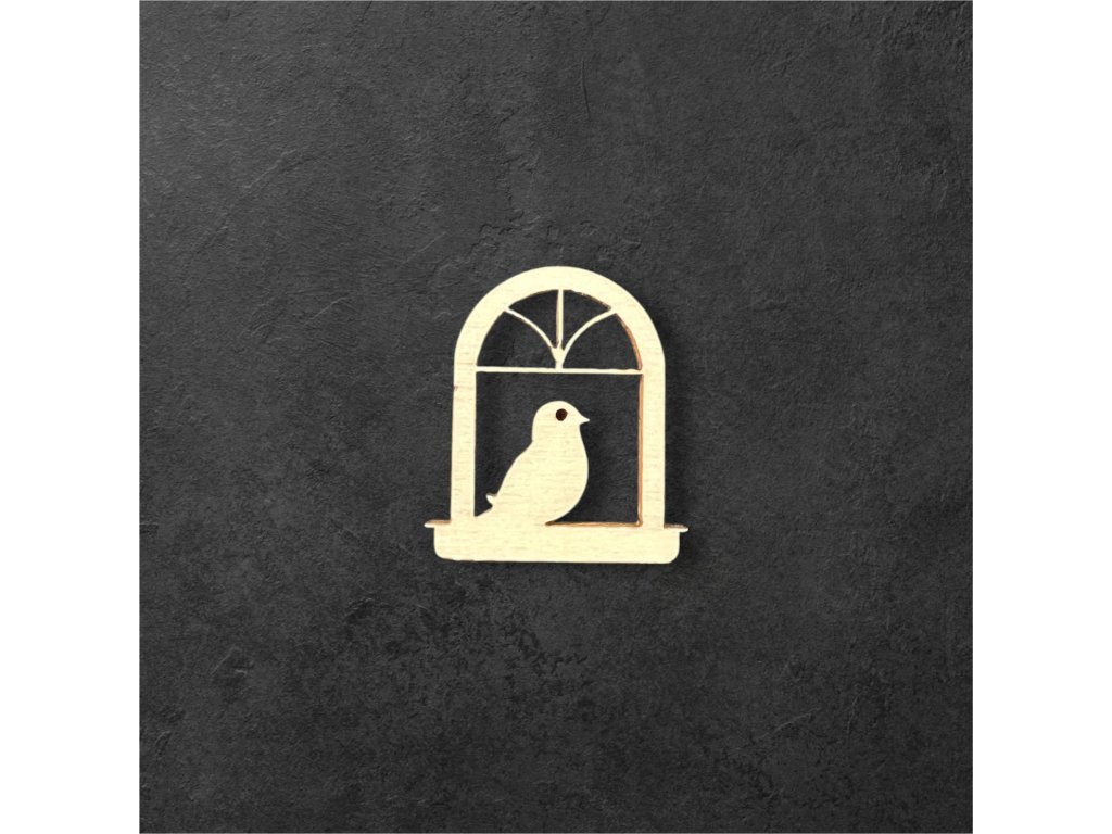 Dřevěný výřez Okno s ptáčkem je drobný polotovar určený k dalšímu tvoření a dekorování.