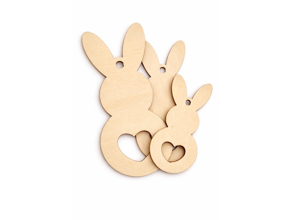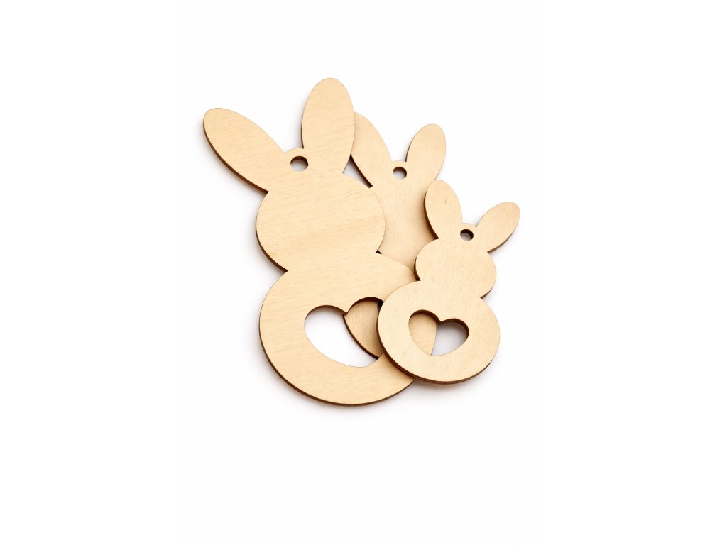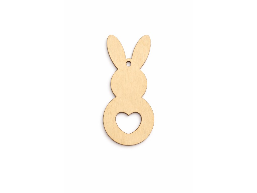 Tento dřevěný zajíček je vyřezaný z 3mm topolové překližky a doplněný o otvor pro zavěšení. Motiv zajíčka se srdcem je vhodný jako základ pro výrobu velikonočních dekorací, závěsných ozdob, dárků nebo jemných doplňků do interiéru.
