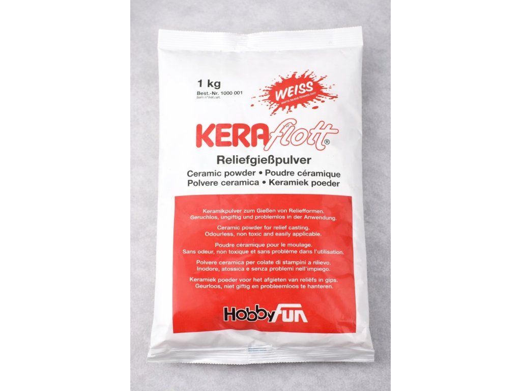 Keraflott je kvalitní bílá odlévací hmota ve formě jemného prášku, vhodná pro výrobu dekorací, figurek a odlitků do silikonových i plastových forem.