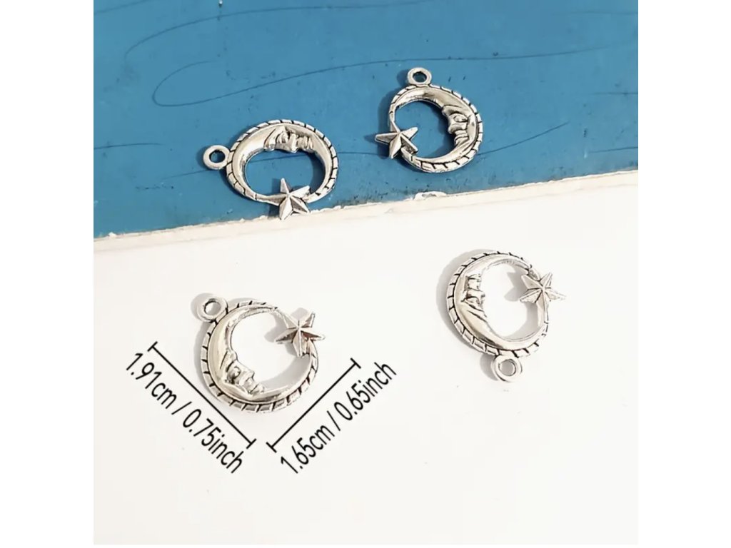 Tento detailně zpracovaný kovový přívěsek ve tvaru měsíce s hvězdou dodá vašim projektům jemný a originální vzhled. Hodí se pro výrobu náušnic, náramků, přívěsků, klíčenek i různých dekorací.