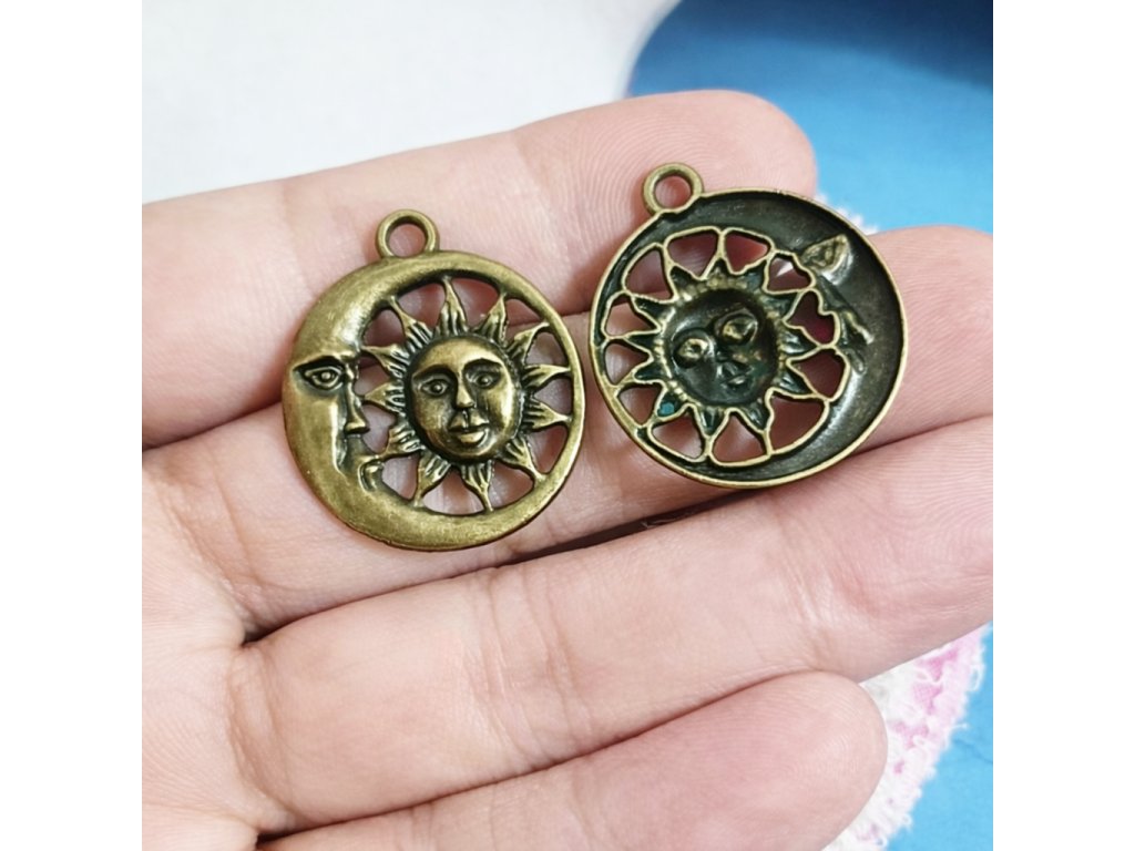 Kovový přívěsek slunce a měsíc - dekorační komponent 24 mm - Odstín bronz