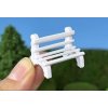 Dekorační mini lavička z bílého plastu. Vhodné do domečků, mini zahrádek, terárií nebo jako doplněk k modelům.