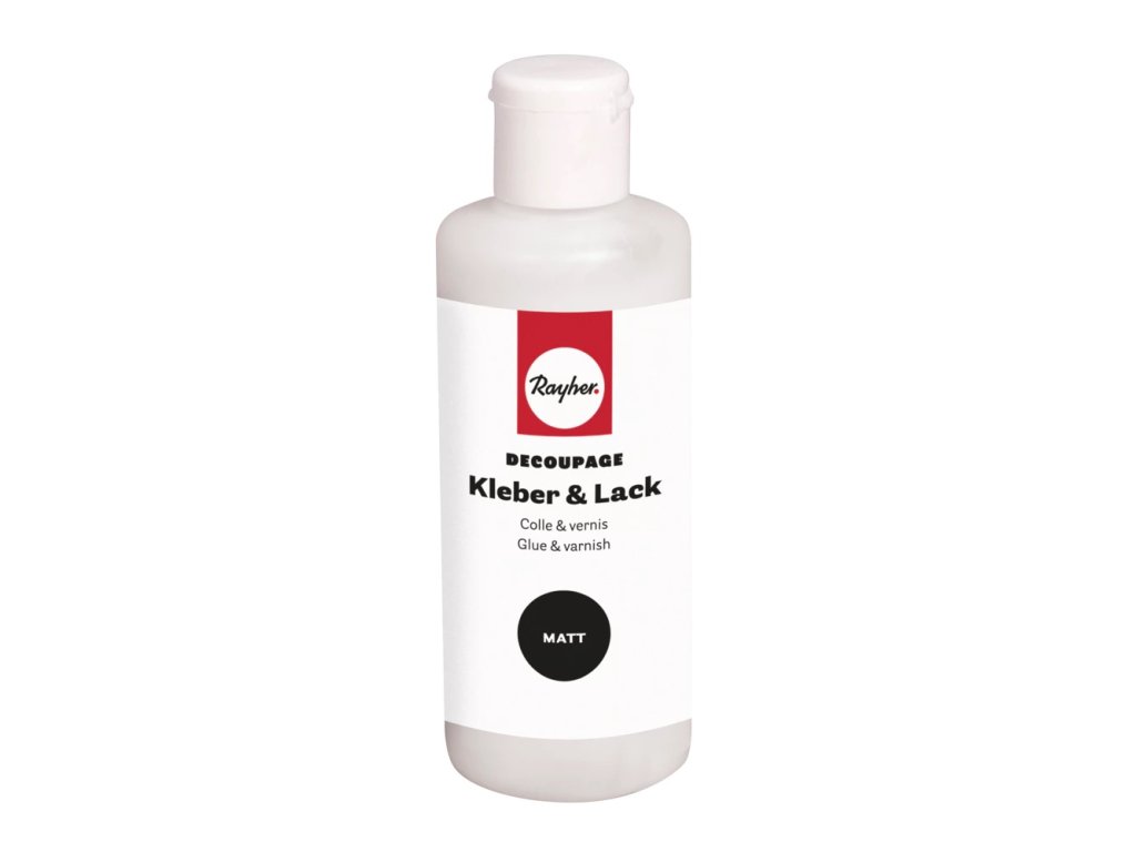 Rayher Decoupage Glue & Varnish v matné variantě je praktický pomocník pro techniku ubrouskové metody a další dekorační techniky. Spojuje funkci lepidla i ochranného laku v jednom produktu, takže usnadňuje celý proces tvoření.