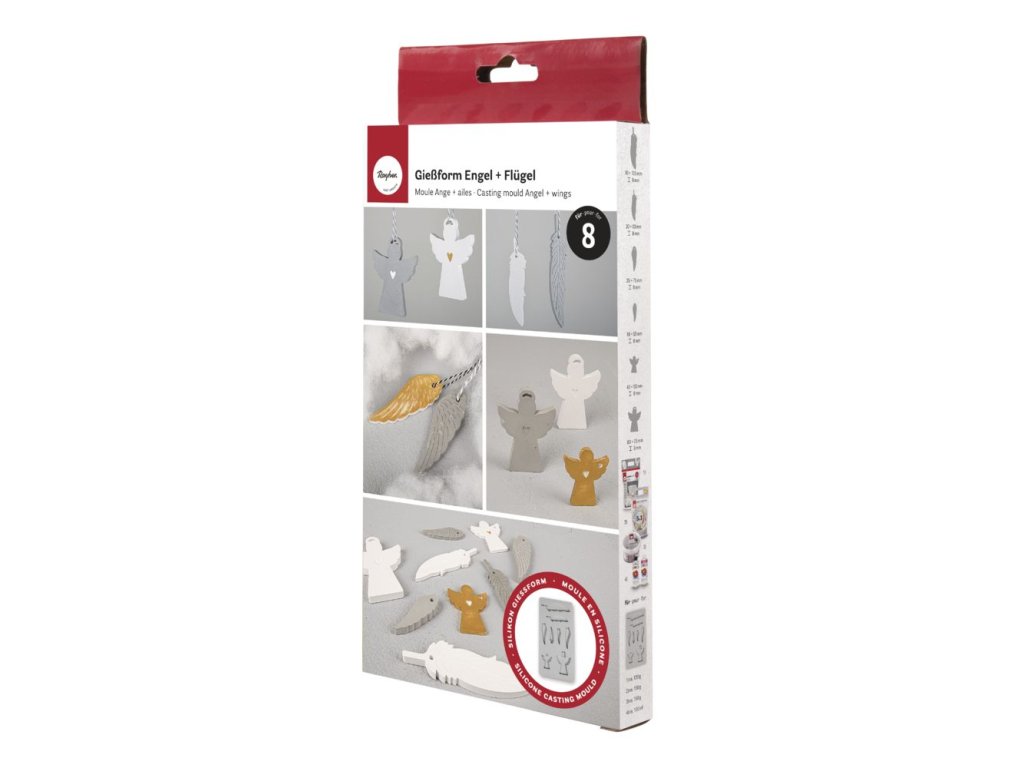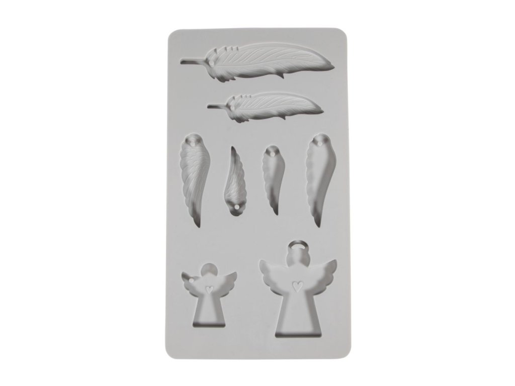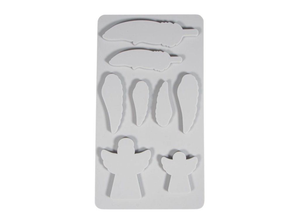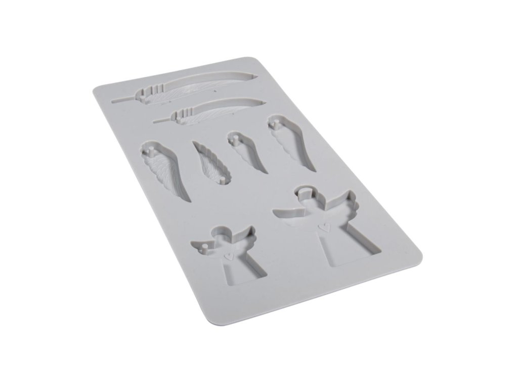 Tato flexibilní silikonová forma je určená pro výrobu dekorací s andělskou tematikou. Obsahuje osm motivů – dva typy andělů, několik variant křídel a detailní pírka. Díky kvalitnímu silikonu se odlitky snadno vyjímají, forma drží tvar a je vhodná pro opakované použití.