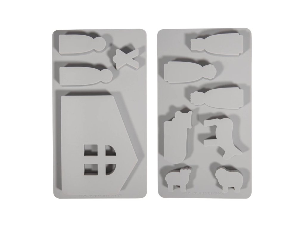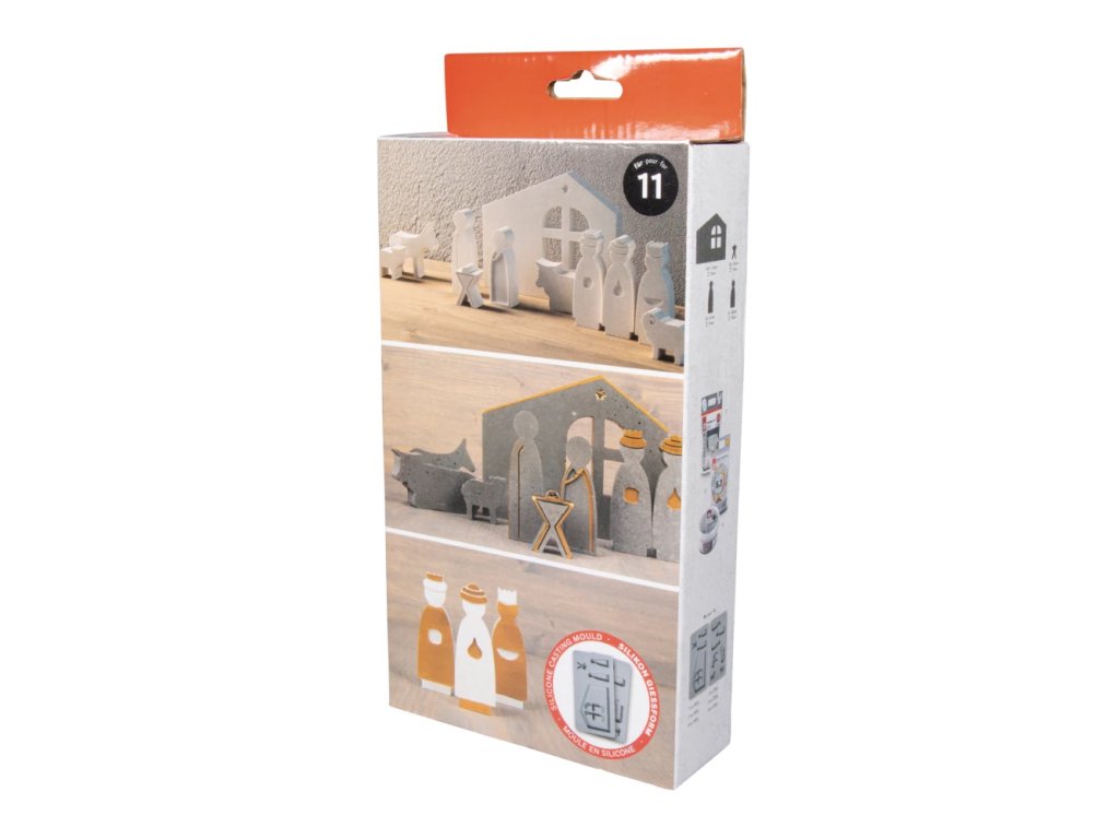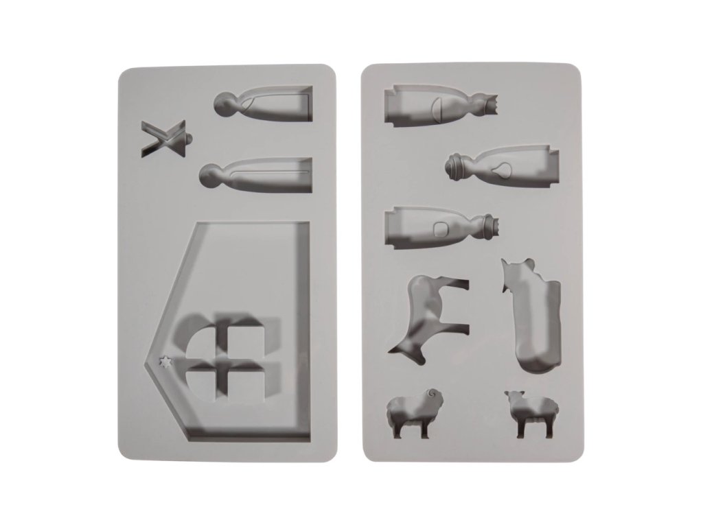 Tato dvoudílná silikonová forma je určena pro výrobu detailních betlémových figurek a vánočních dekorací. Součástí je 11 motivů, které dohromady vytvoří kompletní scénu Betléma – Ježíšek, Marie, Josef, jesličky, zvířata i další postavy.