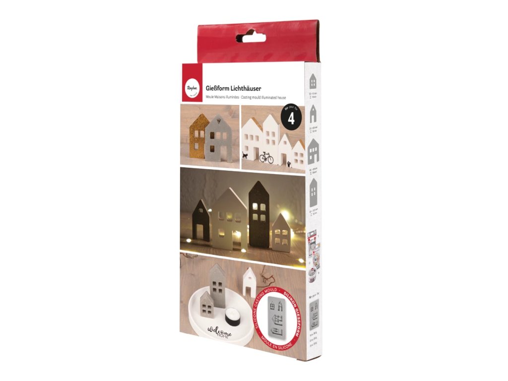 Rayher Silikonová odlévací forma „Illuminated House“ – 4 domky (14,5 × 26 × 1,7 cm)