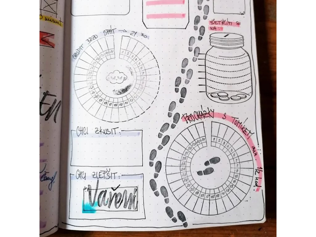 Razítka jsou vhodná pro zaznamenávání plnění úkolů, sledování návyků, nálady, pohybu, pitného režimu nebo jiných každodenních aktivit. Díky přehledným motivům si snadno vytvoříte vlastní systém plánování přesně podle svých potřeb.