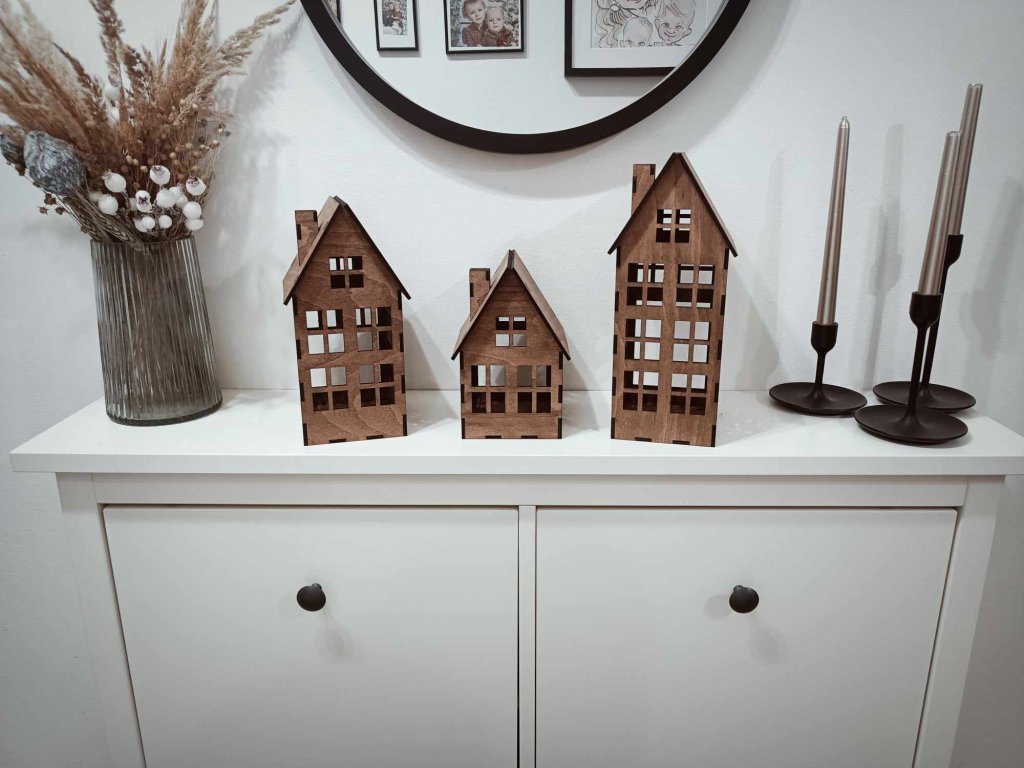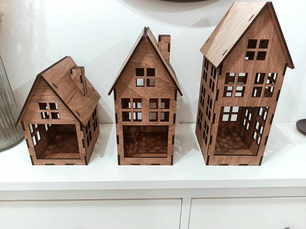 Naše laserem vyřezávané dřevěné domečky jsou perfektním doplňkem pro váš interiér i sezónní dekorace. Jsou vyrobeny z kvalitní bukové překližky o tloušťce 3 mm.