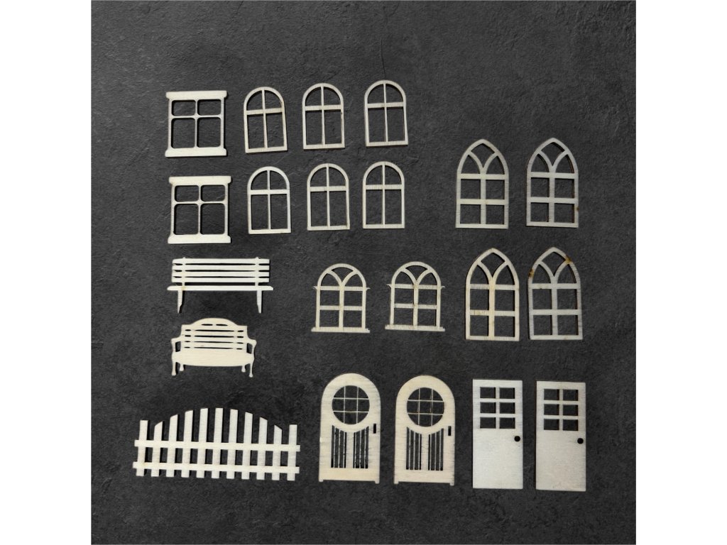 Tato sada obsahuje dřevěné doplňky z 3mm topolové překližky, které nejsou připevněné a jsou připravené k vlastnímu dotvoření.