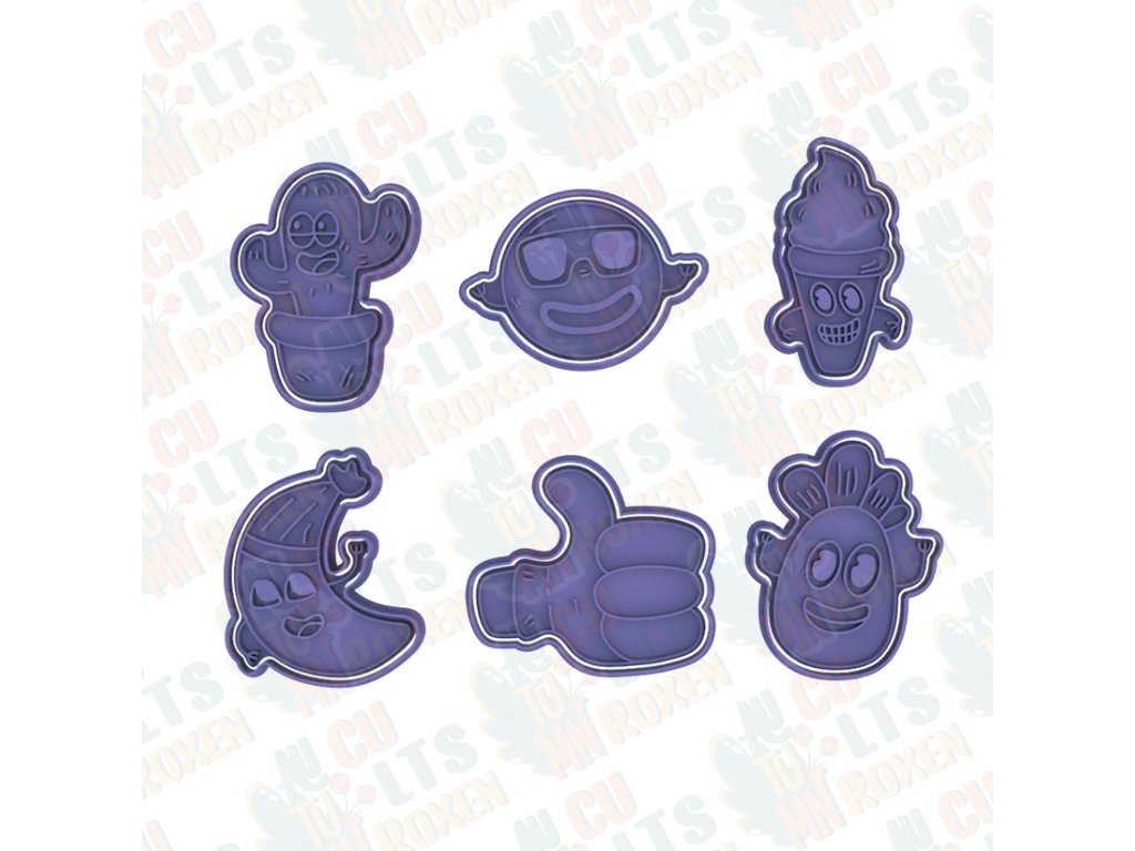 Dvoudílná plastová vykrajovátka jsou vyráběna pomocí moderní technologie 3D tisku z bioplastu PLA a mohou být použita na různé kreativní účely. Skládají se z okraje a razítka.