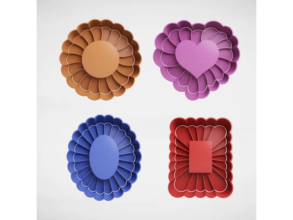 Dvoudílná plastová vykrajovátka jsou vyráběna pomocí moderní technologie 3D tisku z bioplastu PLA a mohou být použita na různé kreativní účely. Skládají se z okraje a razítka.