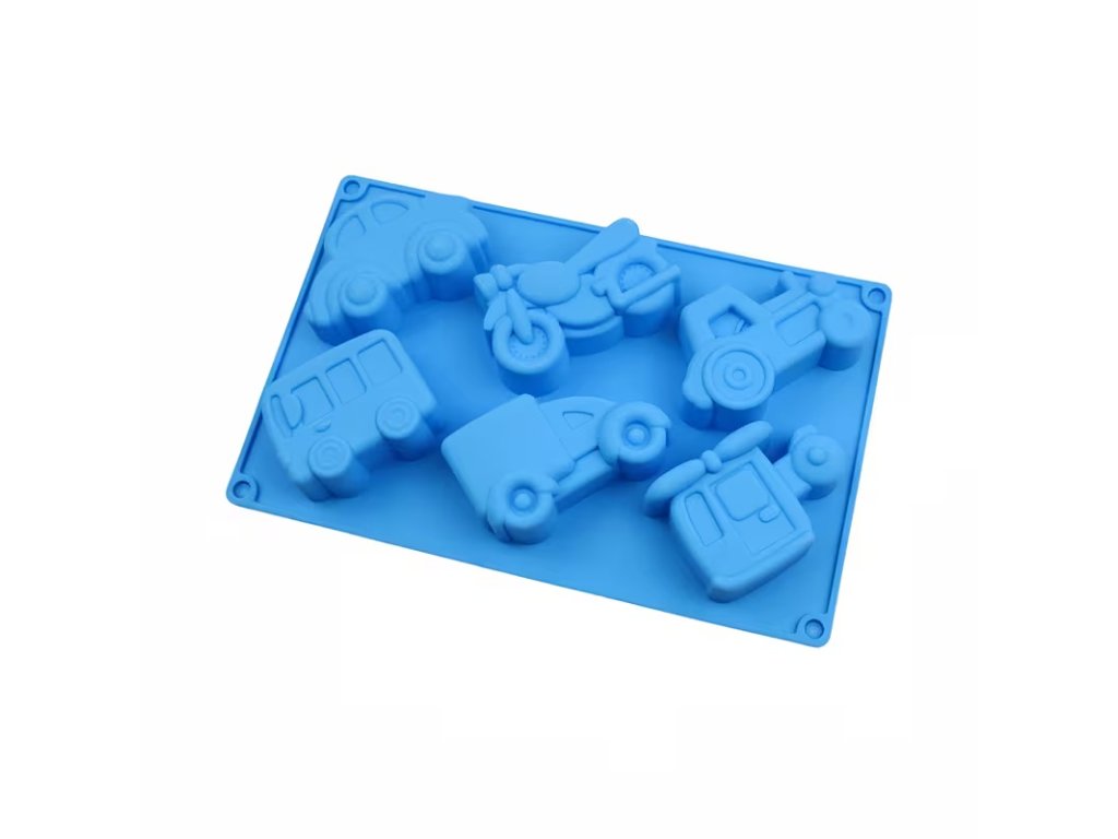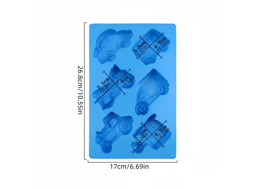 Pružná silikonová forma s motivy různých dopravních prostředků – auto, dodávka, autobus, traktor, helikoptéra a motorka. Každý tvar má hezké detaily kol, kapoty a oken, které se krásně otisknou do odlitku.