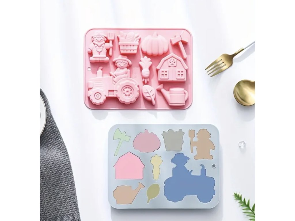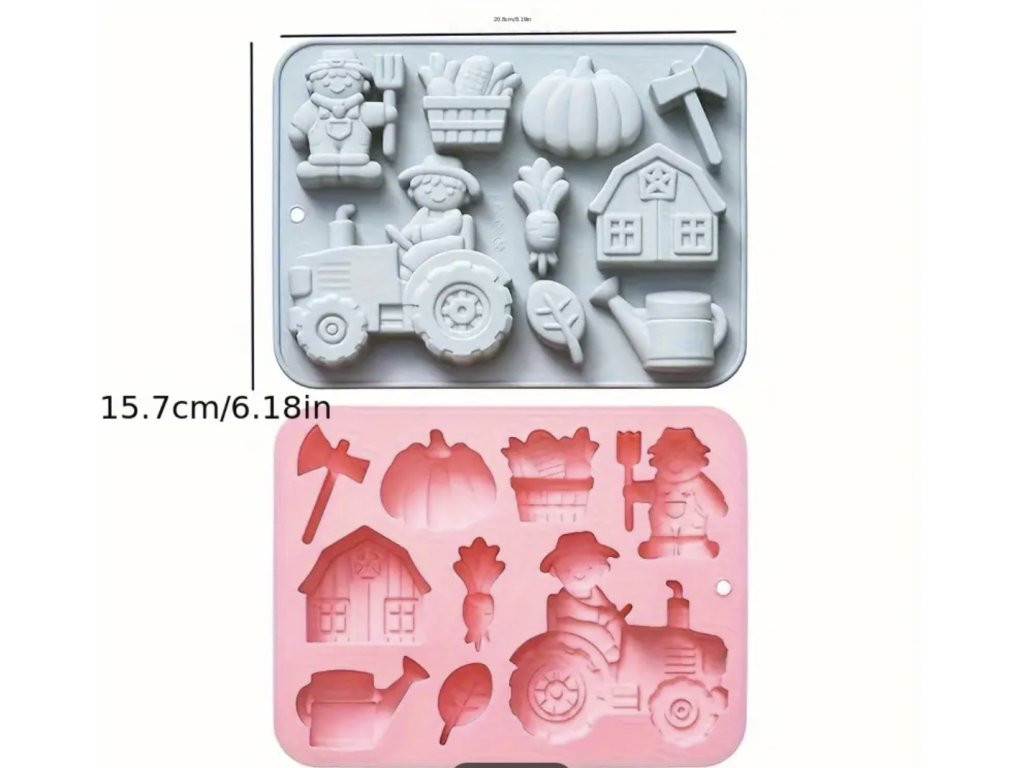 Originální silikonová forma s venkovskými motivy – najdete zde zvířata z farmy, traktor, stodolu, větrný mlýn i podzimní dýni. Forma je vyrobená z kvalitního silikonu, je pružná, snadno se vyklápí a jednoduše čistí.