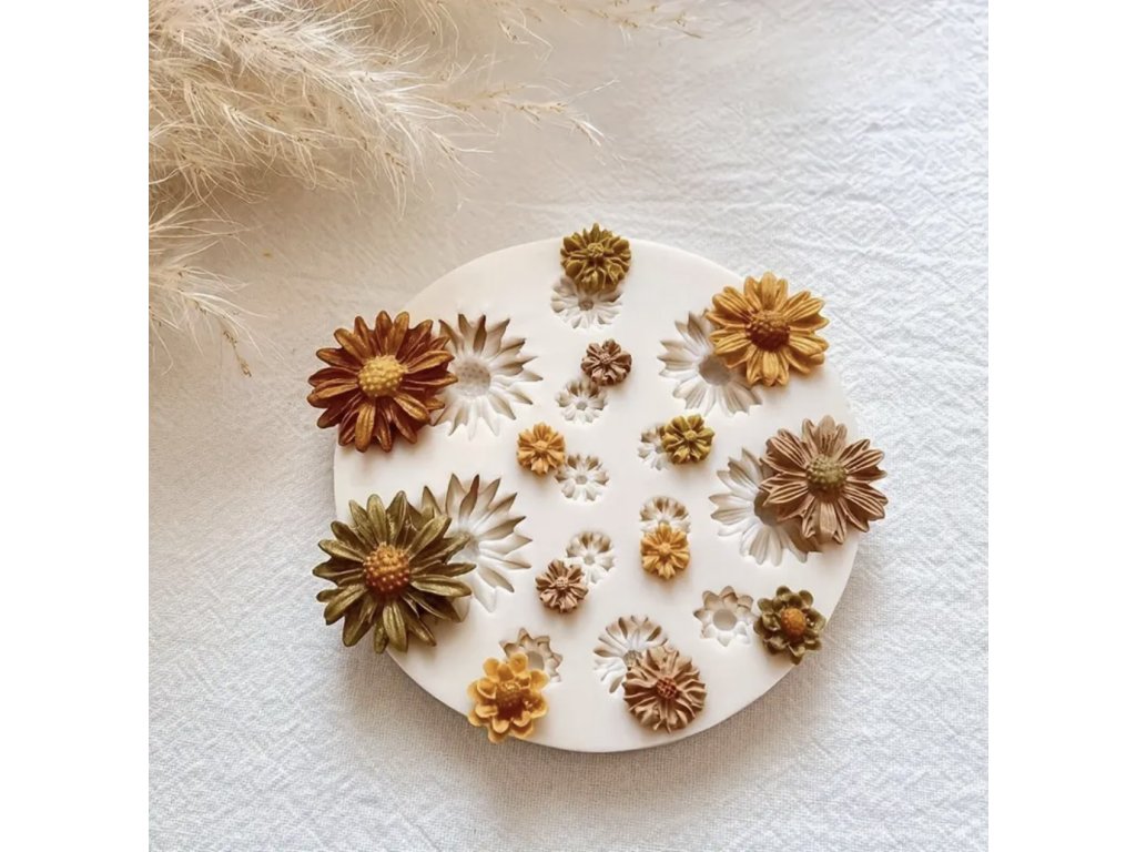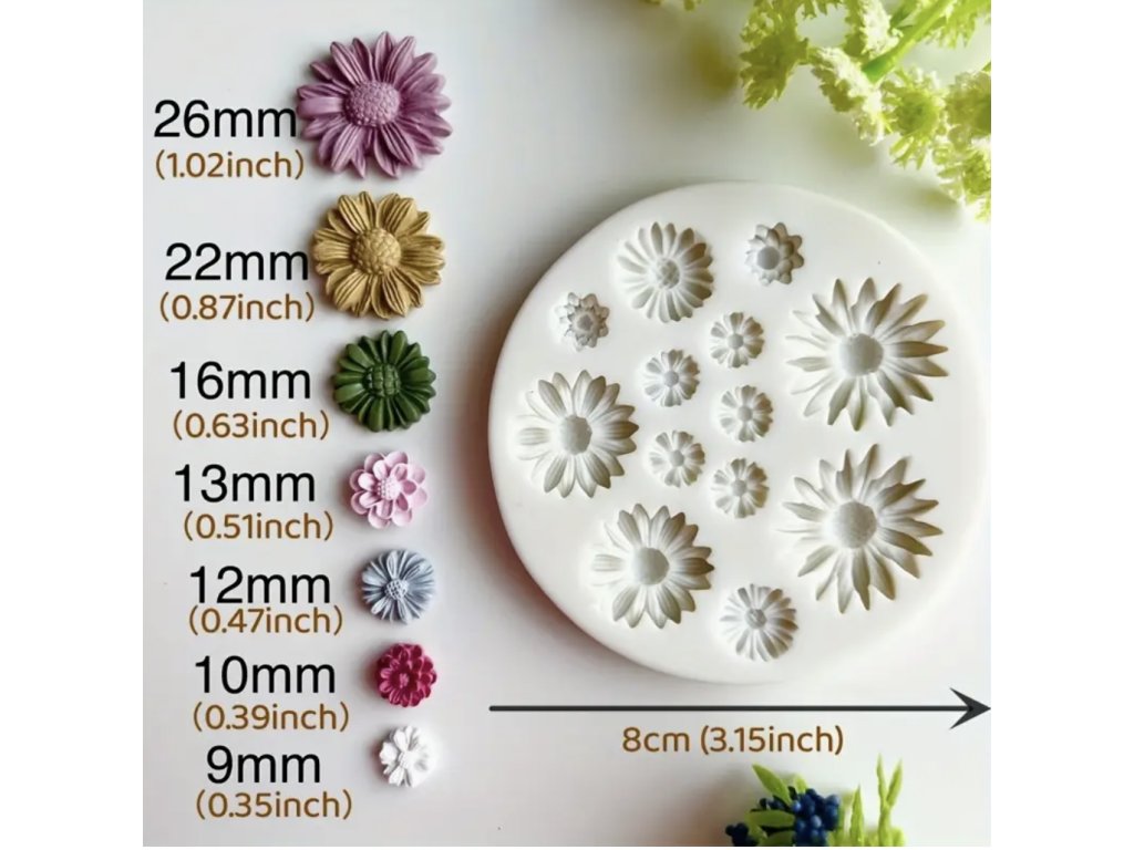 Kulatá silikonová forma s detailně propracovanými motivy květin o průměru 8 cm. Obsahuje několik velikostí od 9 mm do 26 mm, díky čemuž snadno vytvoříte jemné ozdoby i výraznější dekorace. Forma je vhodná pro práci s pryskyřicí, sádrou, polymerovými hmotami nebo jinými kreativními materiály.