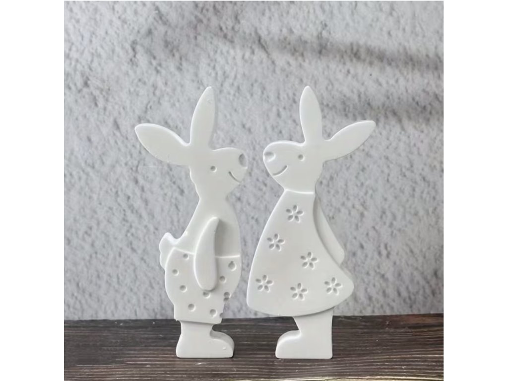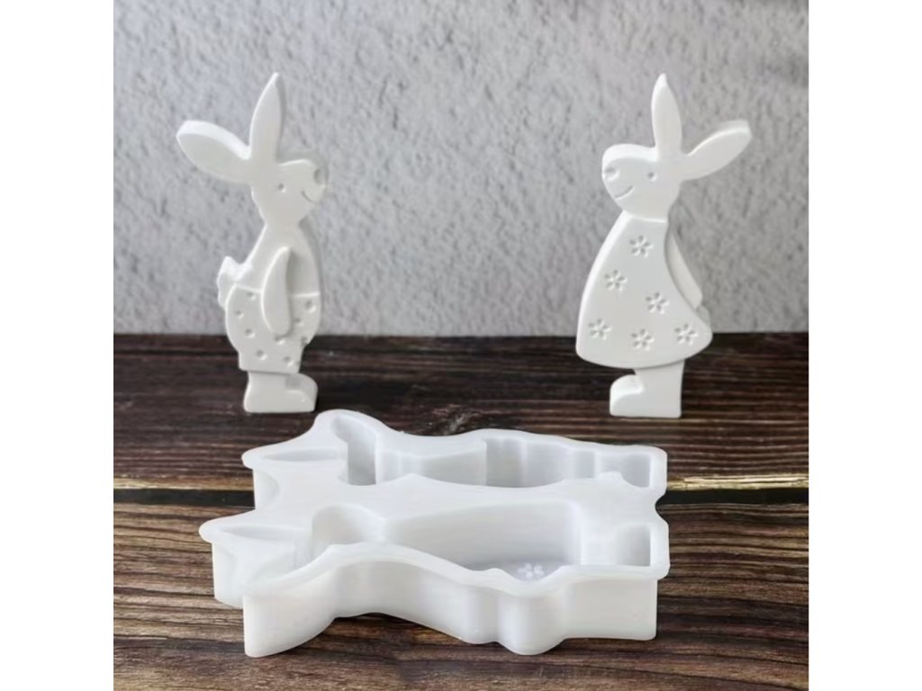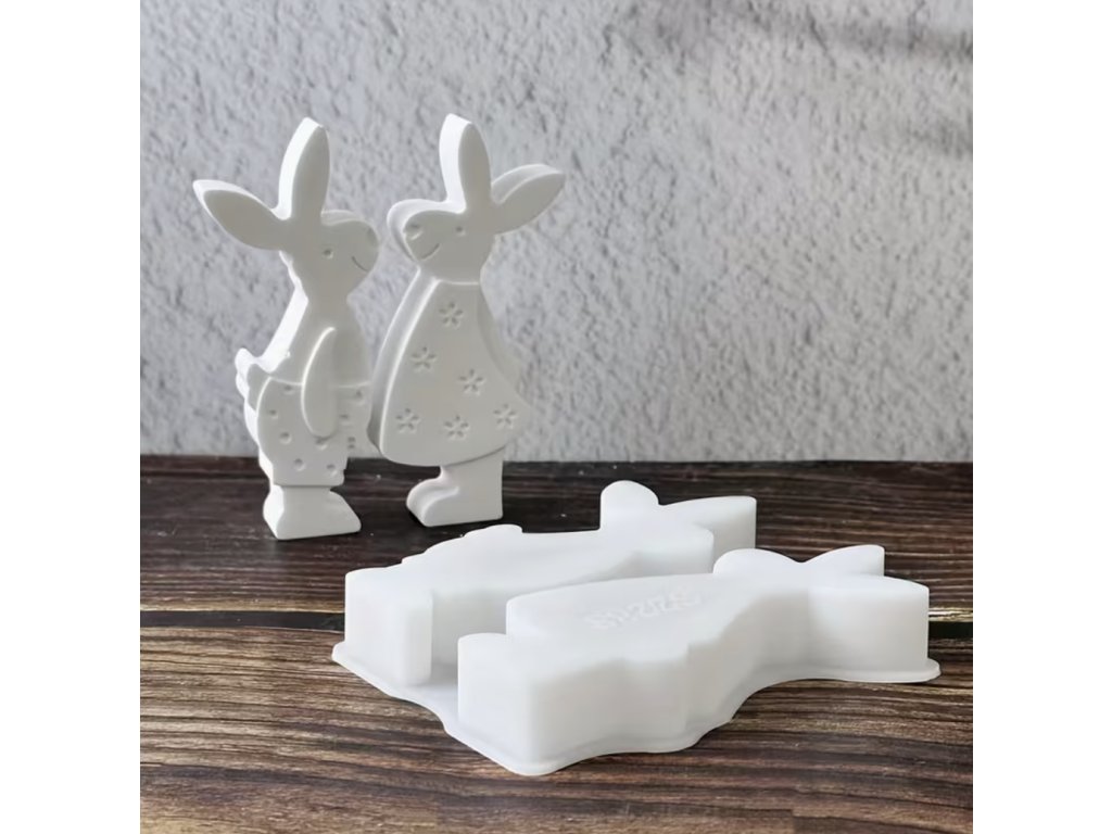 Silikonová forma s motivy dvou velikonočních zajíčků je vhodná pro výrobu jarních dekorací. Forma obsahuje dva různé motivy – zajíčka a zajíčici s jemnými reliéfními detaily.