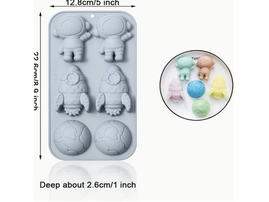 Tato detailně zpracovaná silikonová forma s vesmírnými motivy přináší zábavný způsob, jak tvořit originální dekorace. Obsahuje motivy dvou astronautů, dvou raket a dvou planet – ideální pro kreativní tvoření s dětmi i dospělé.