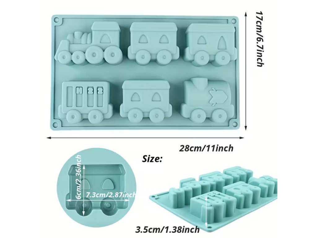 Detailní silikonová forma s motivem vláčku, která umožní vytvořit lokomotivu a několik různých vagonků. Každý díl má hezké detaily kol, oken a tvarů, které se pěkně otisknou do odlitku.