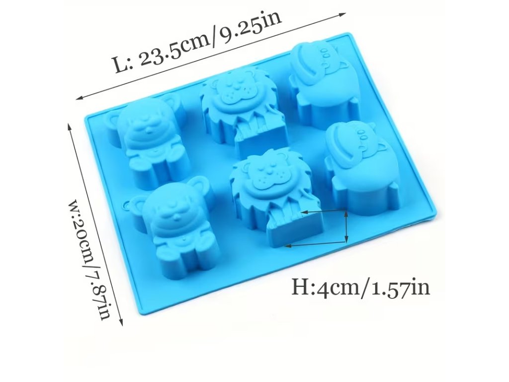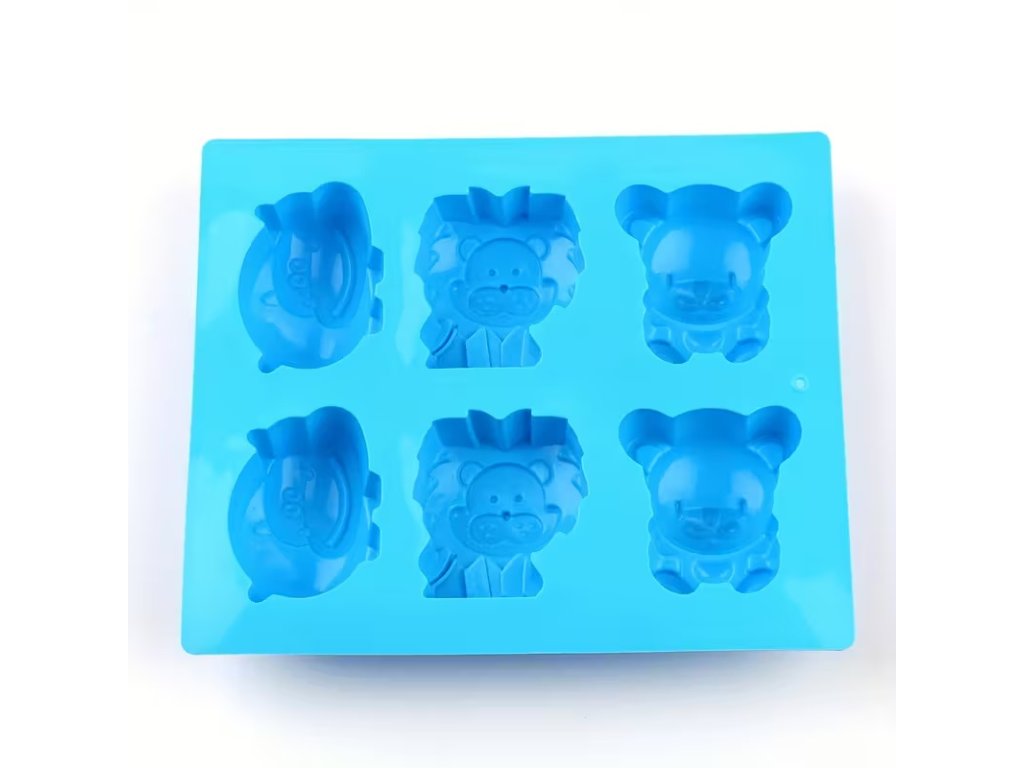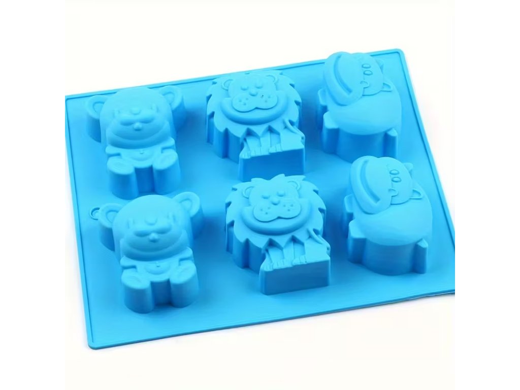 Silikonová forma se šesti různými zvířecími motivy – medvídek, lvíček, opička a další. Každý tvar má detailní obličej i tělo, takže výlisky vypadají krásně a čistě.