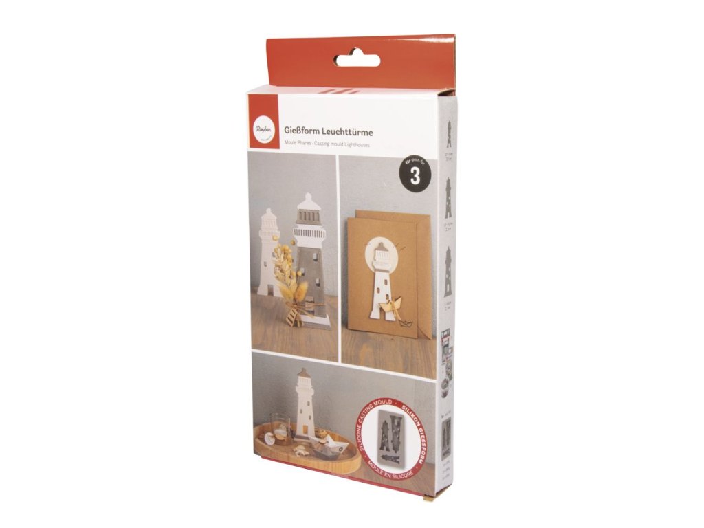 Tato silikonová forma vám umožní vyrobit si vlastní dekorativní majáky — tři různé tvary, které skvěle vyniknou jako součást domácí výzdoby, zahradních dekorací nebo tematických aranžmá. Forma má rozměry 320 × 23 × 160 mm a balení obsahuje jednu formu s třemi motivy.